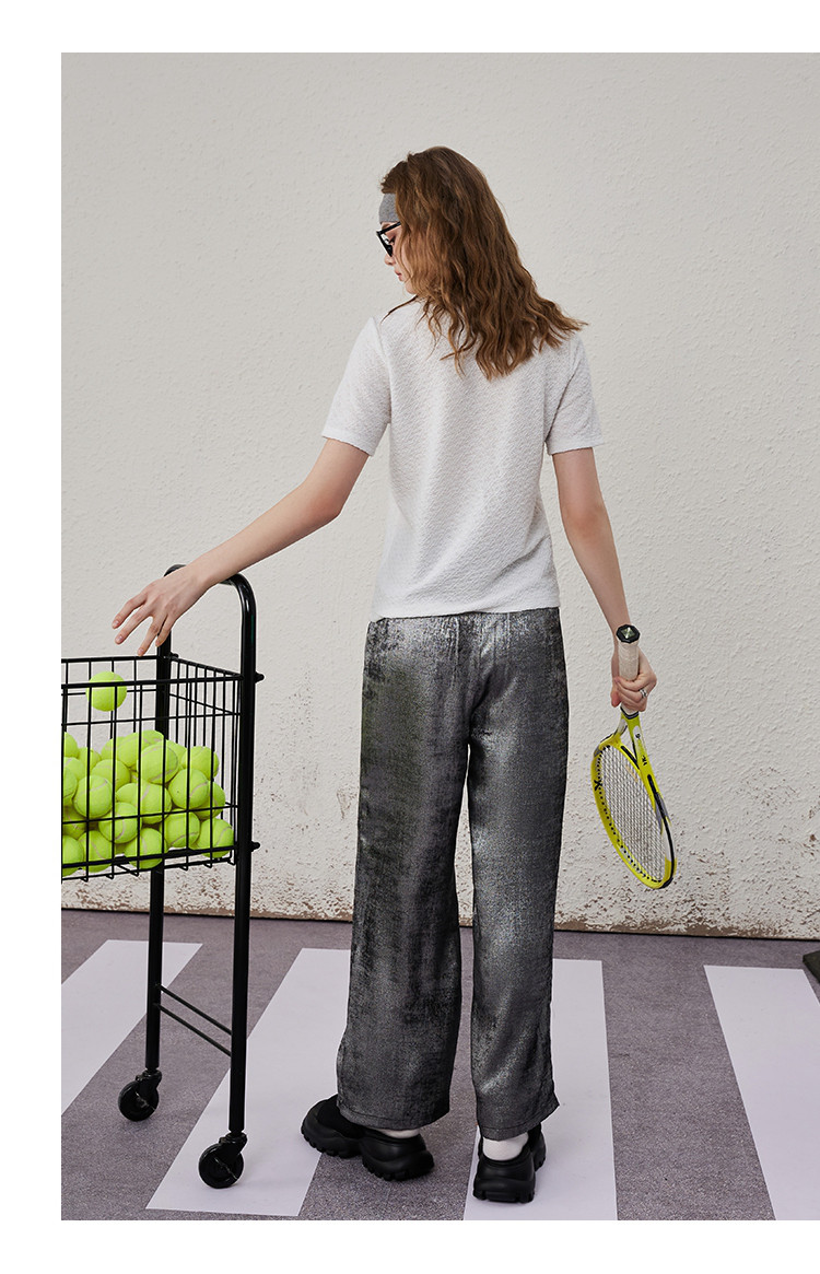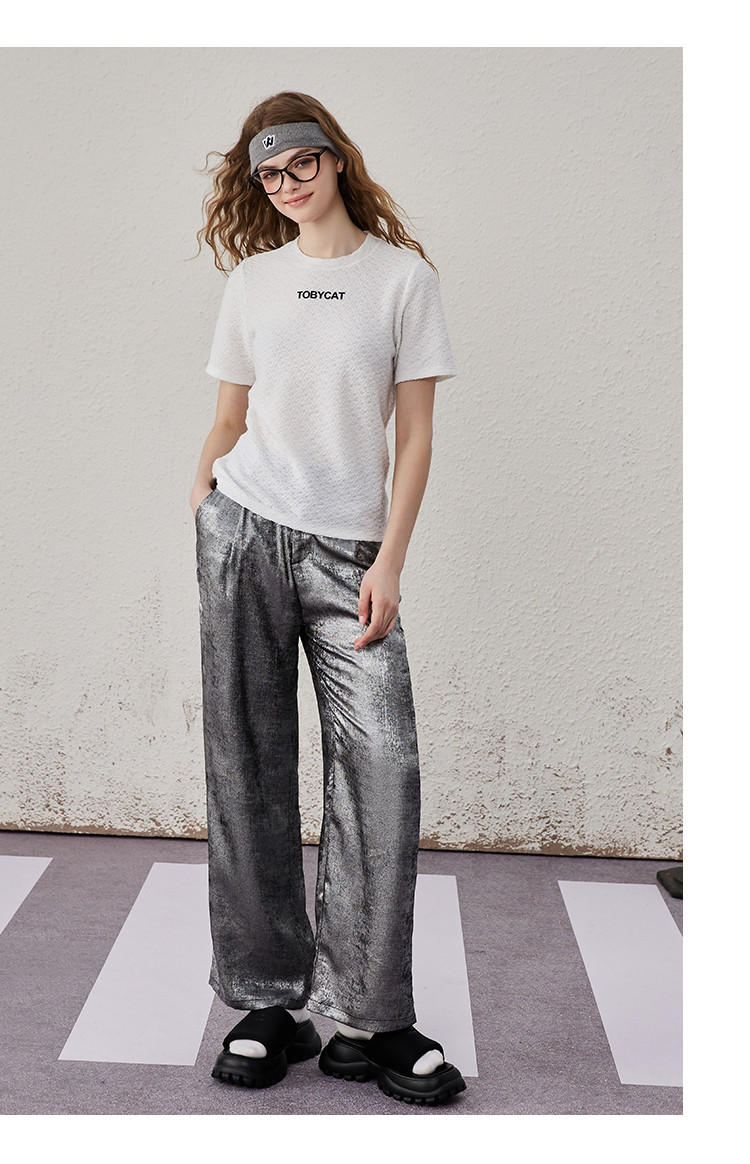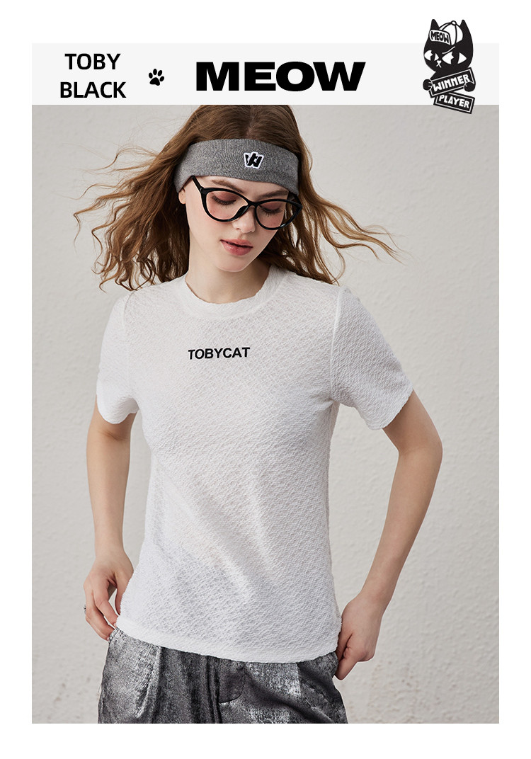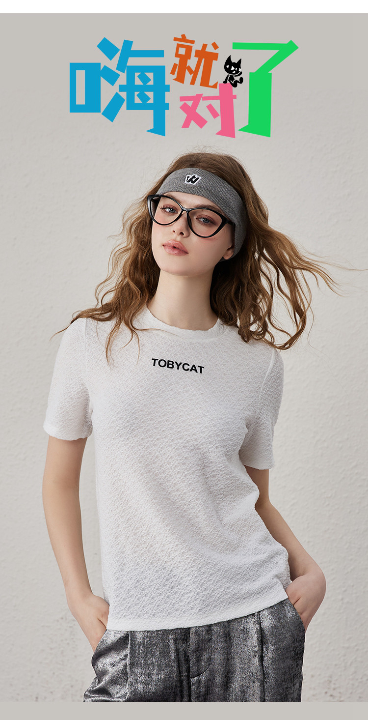 商品名称:纹理感弹性针织面料皮印印花正肩显瘦女式T恤夏季短袖 691357