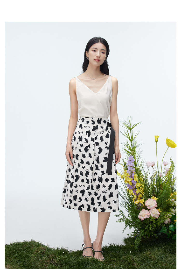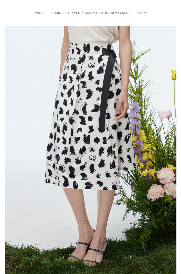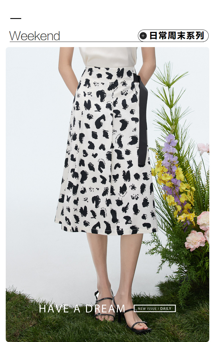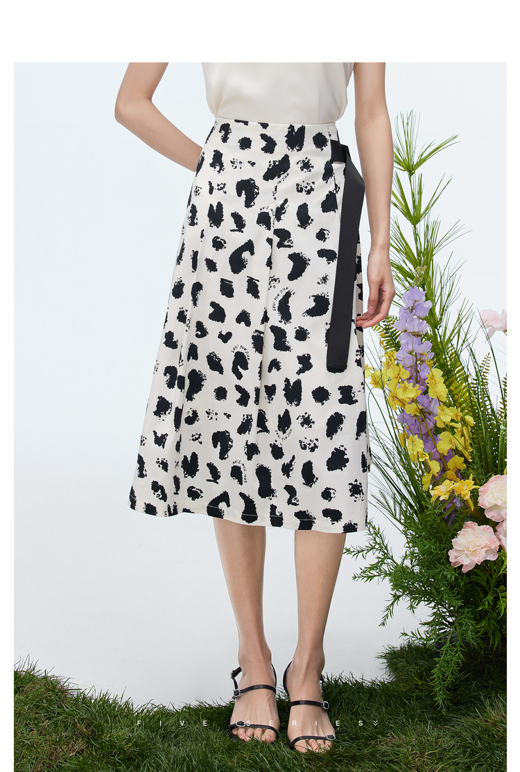 商品名称:洋气a字印花半身裙女夏季设计感不规则裙子女收腰中长款裙子女 157187