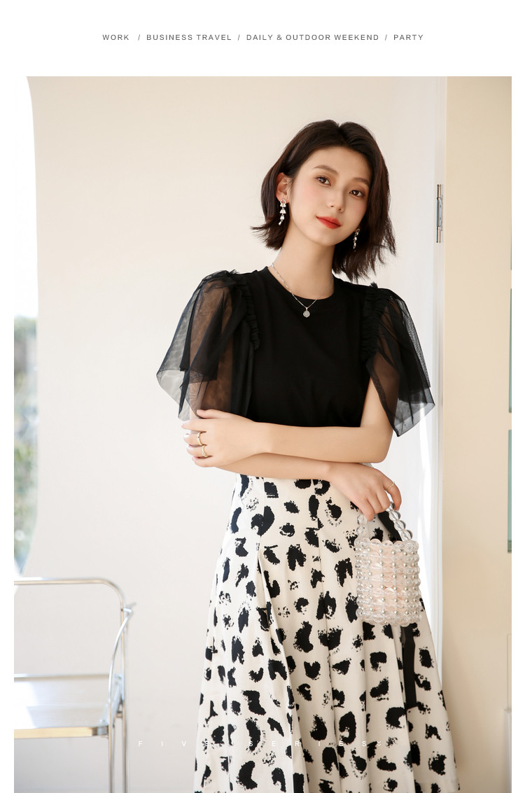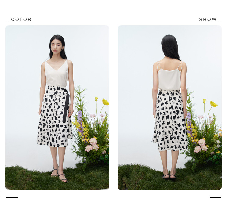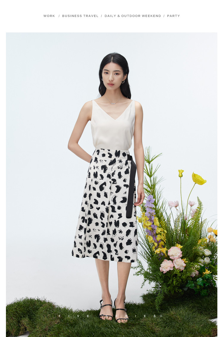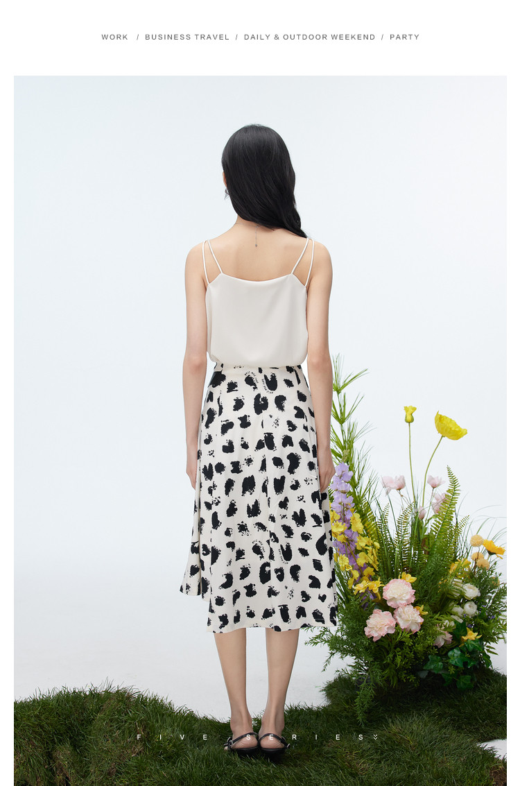 商品名称:洋气a字印花半身裙女夏季设计感不规则裙子女收腰中长款裙子女 157187