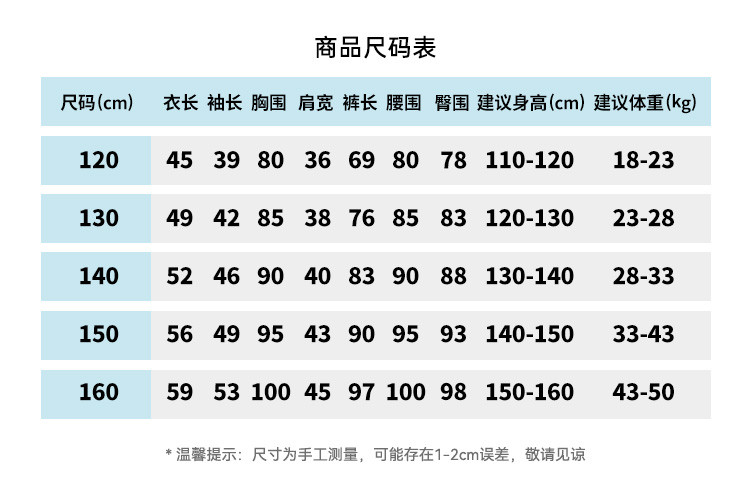| 160 | 45 | 53 | 160/80 | 11-13岁 | 160/69 | 59 | 150-160 | 100 | 97 | 98 | 100 | 160/80 |