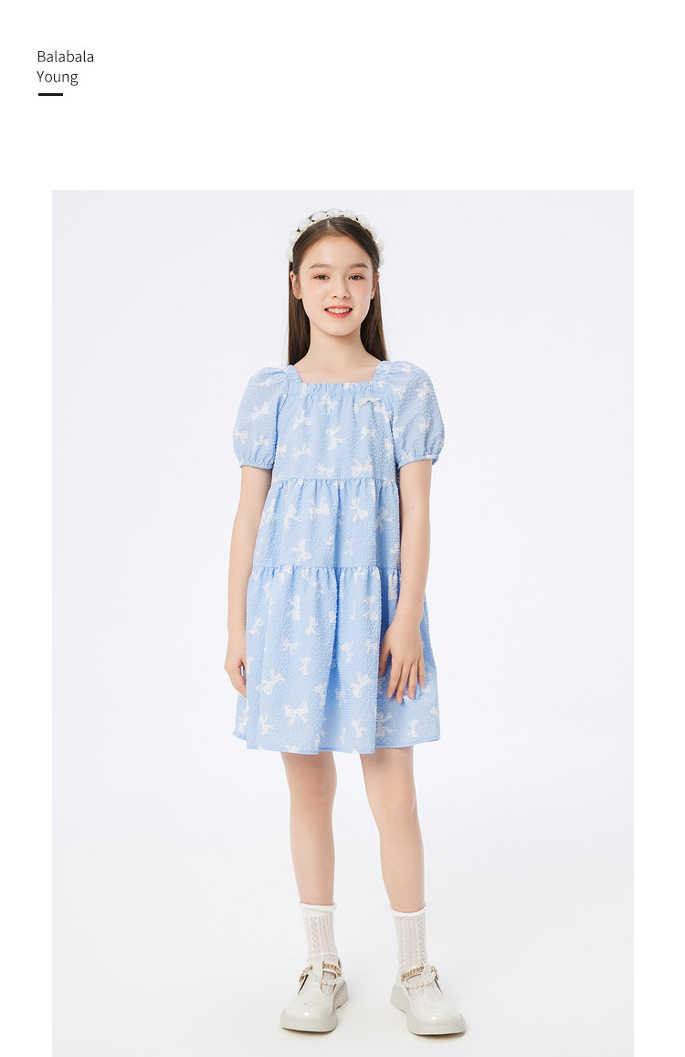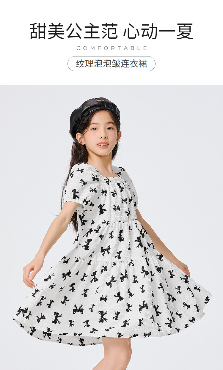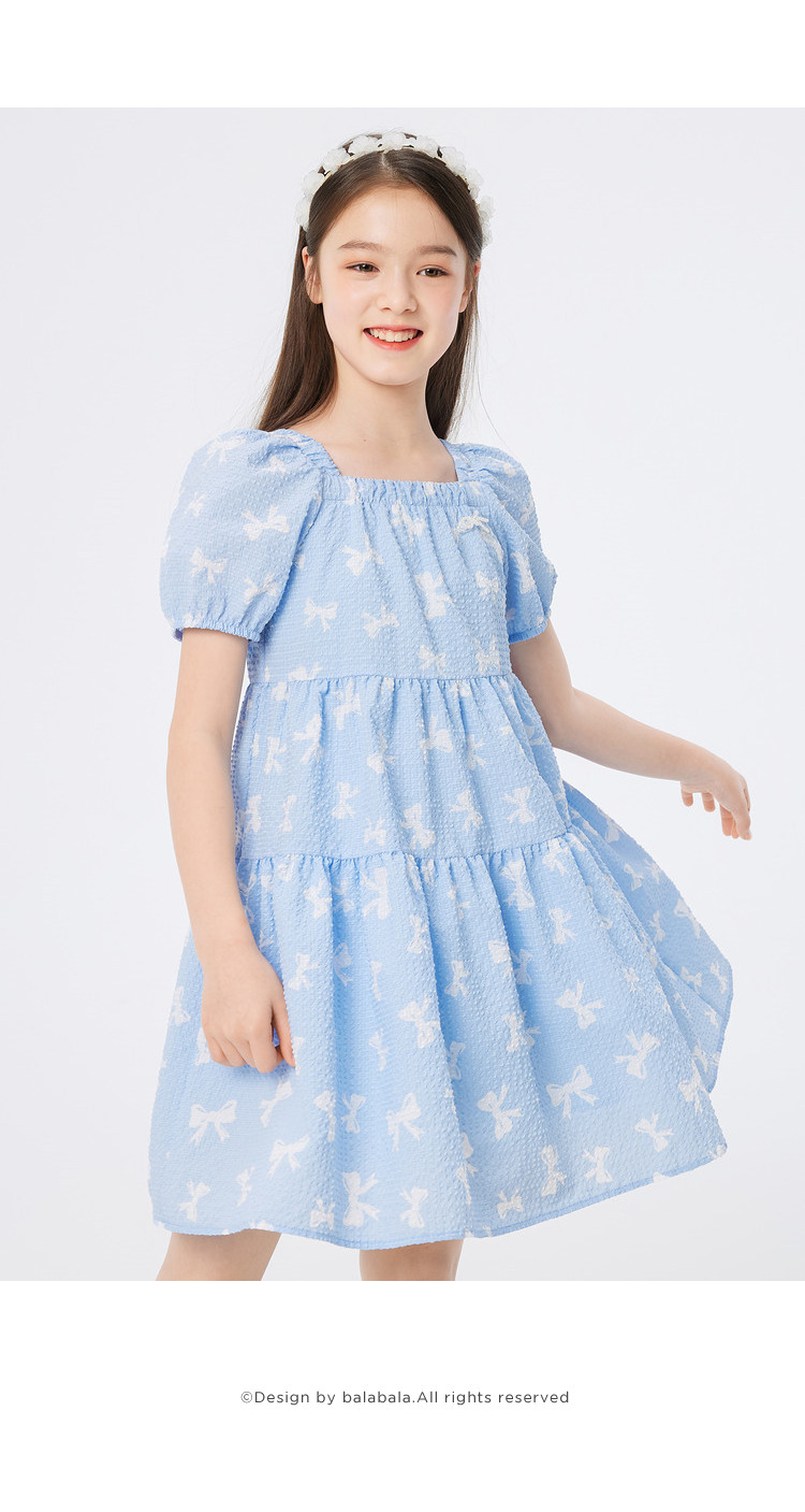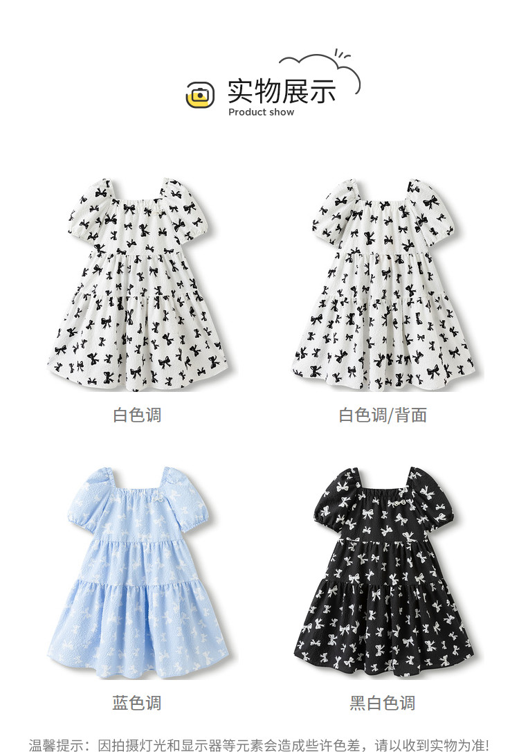 商品名称:儿童裙子连衣裙夏季款蝴蝶结公主裙大童薄款学院风甜美女童裙子 905925