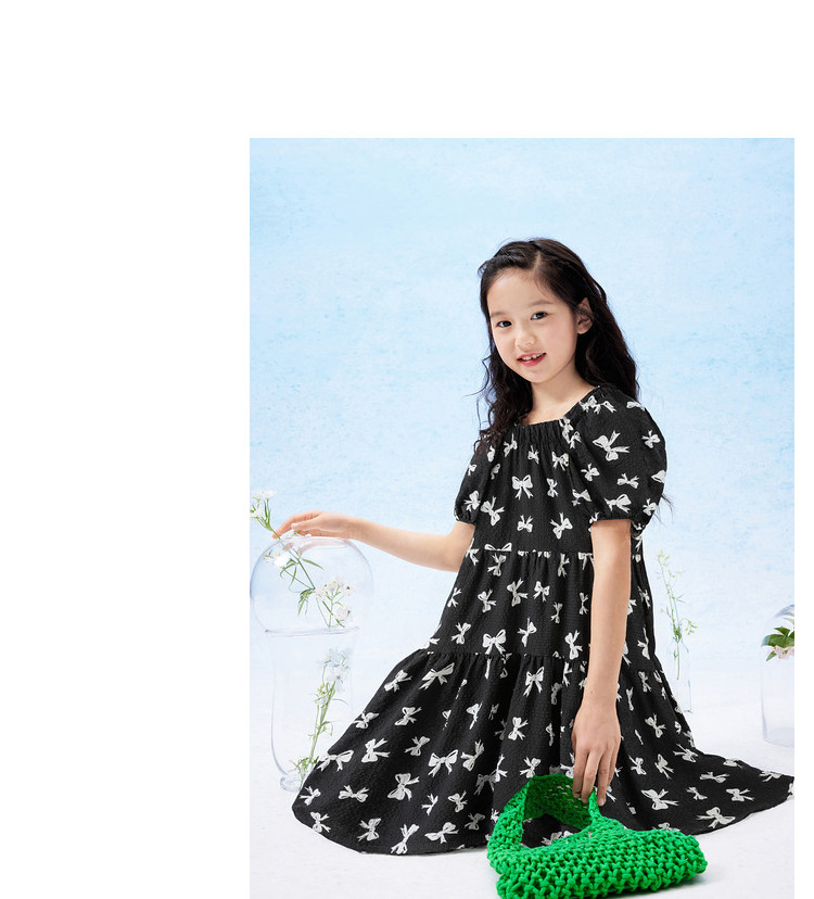 儿童裙子连衣裙夏季款蝴蝶结公主裙大童薄款学院风甜美女童裙子 905925