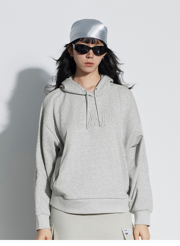 Gap女装春夏3D浮雕logo慵懒风美式复古纯色连帽卫衣429363 182490