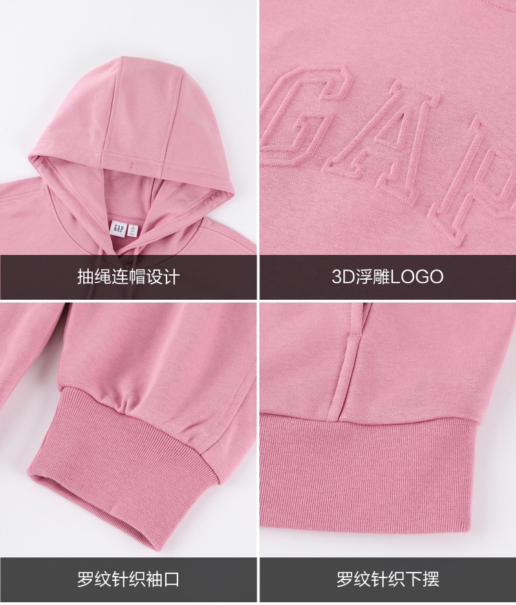 商品名称:Gap女装春夏3D浮雕logo慵懒风美式复古纯色连帽卫衣429363 182490