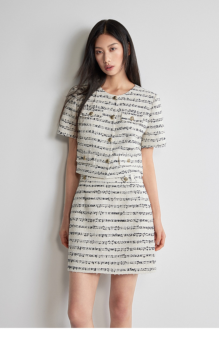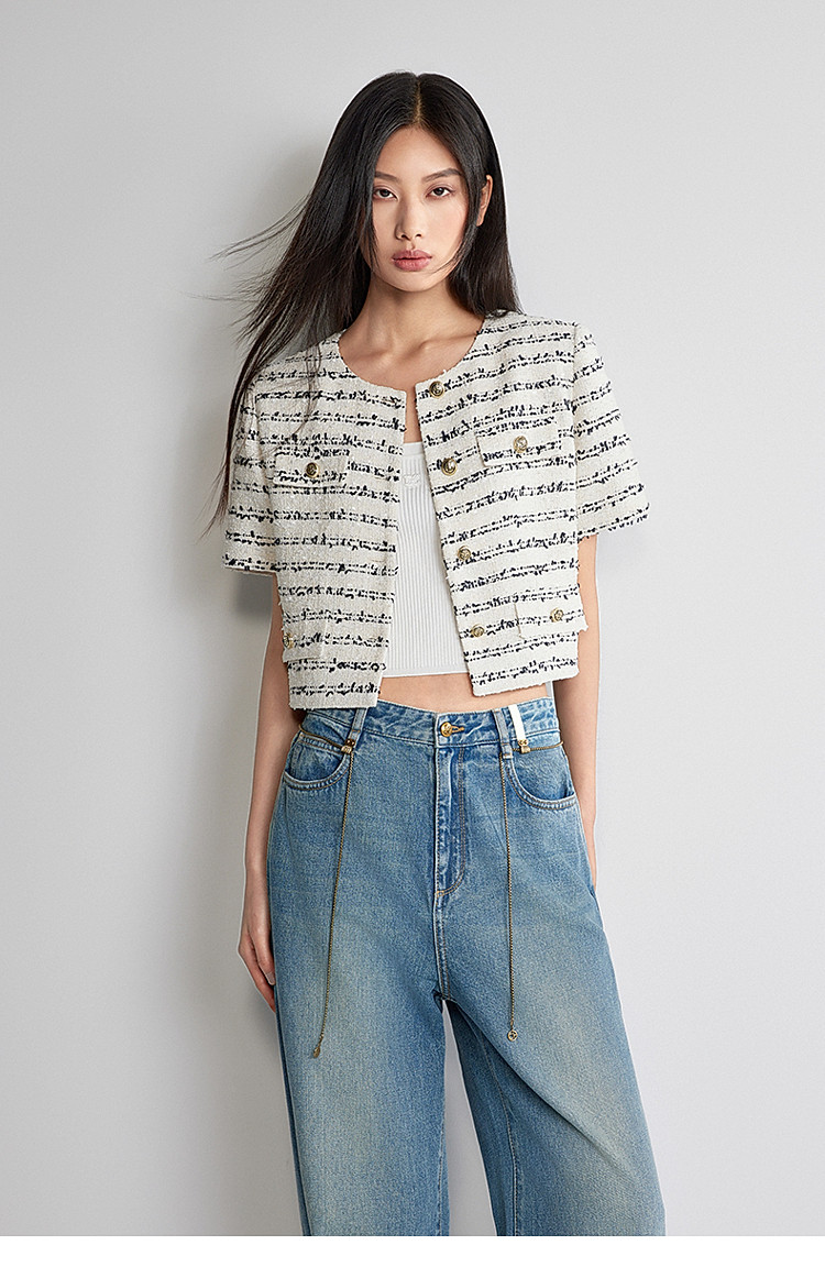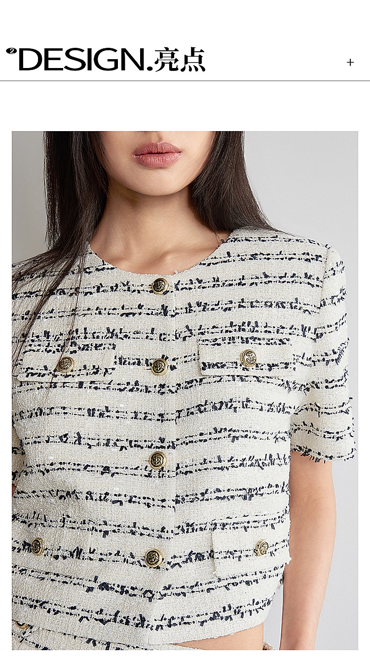 夏装 花式纱小香风短袖针织衫女短款箱型 850511
