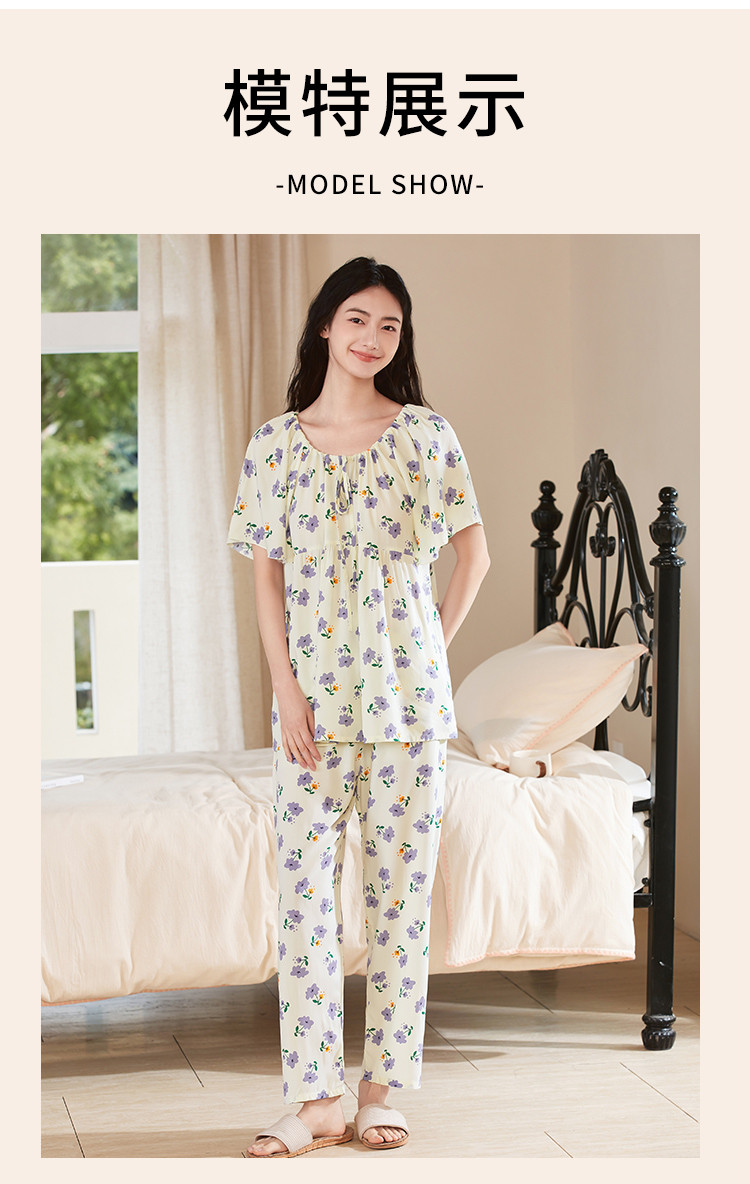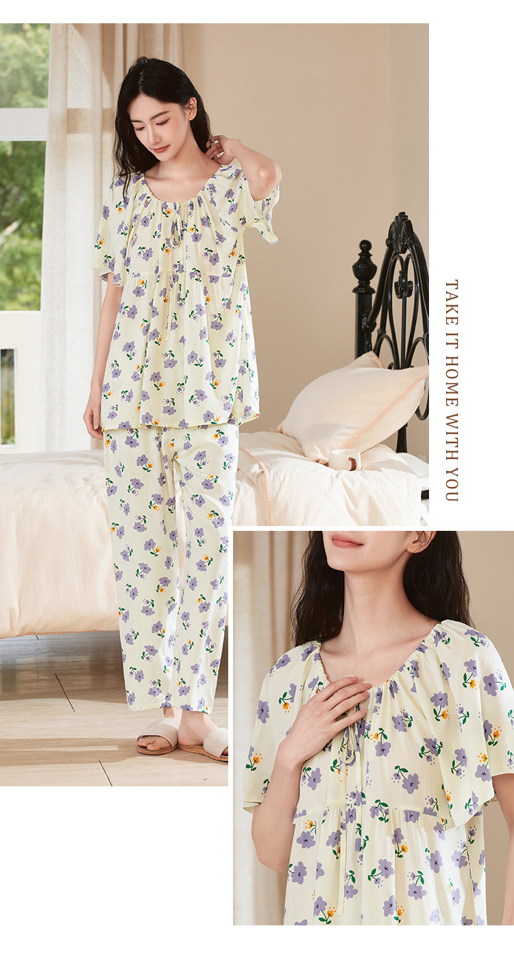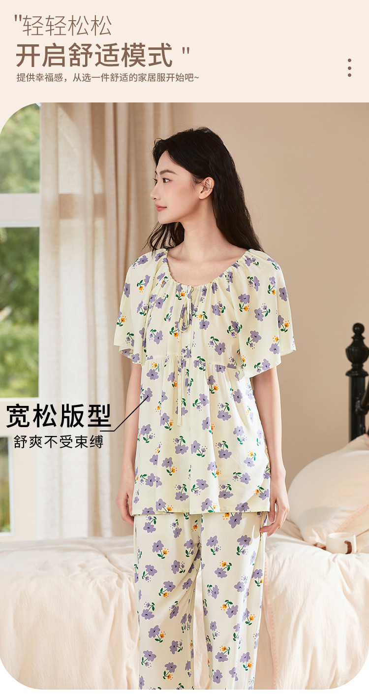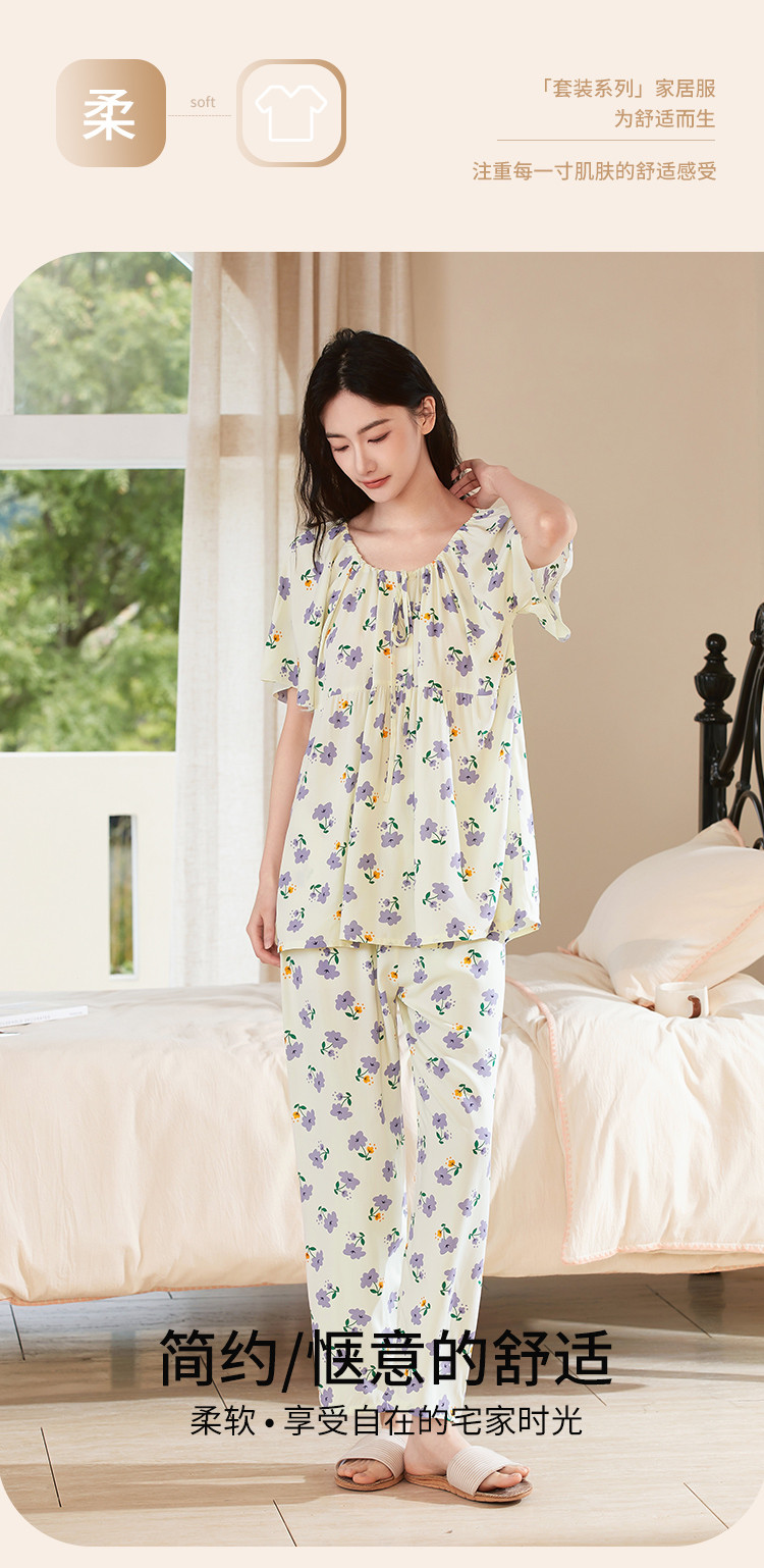 商品名称:【精致甜美风】圆领系带印花睡衣女士家居服夏季款温柔舒适亲肤 242315