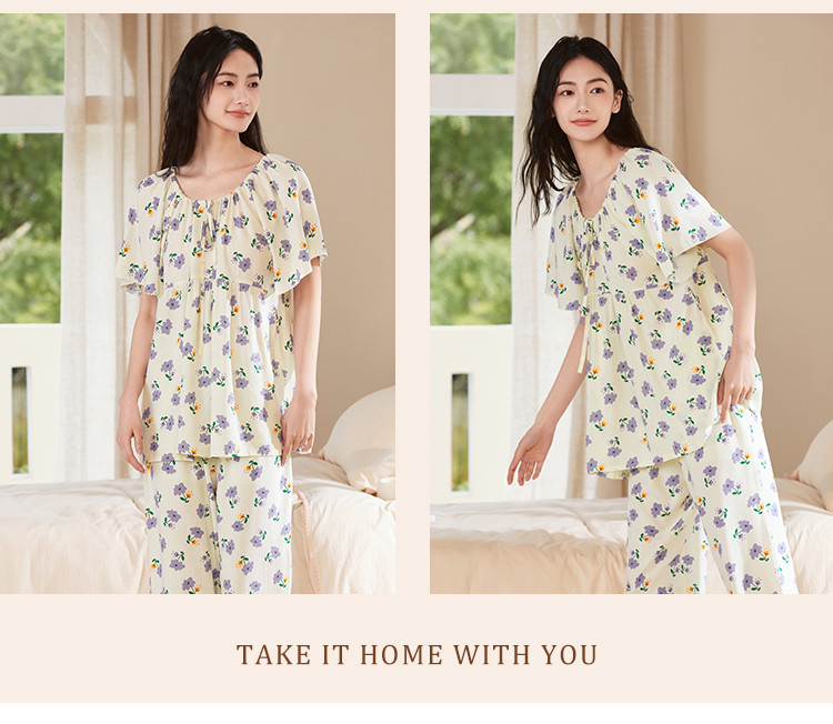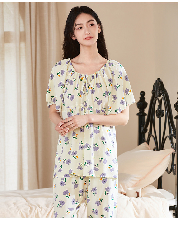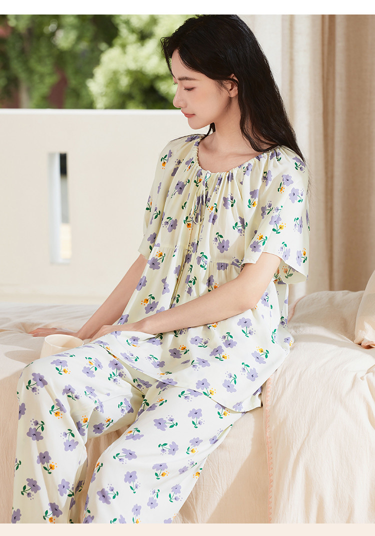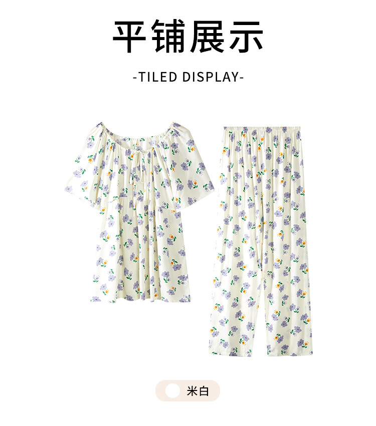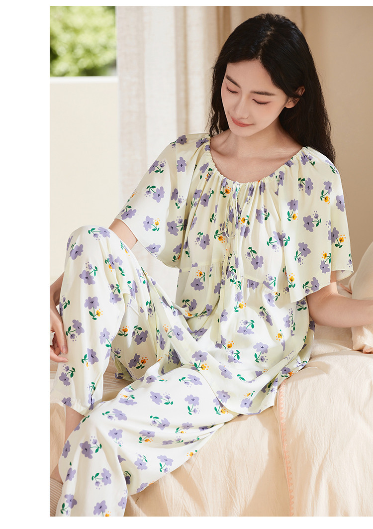 商品名称:【精致甜美风】圆领系带印花睡衣女士家居服夏季款温柔舒适亲肤 242315