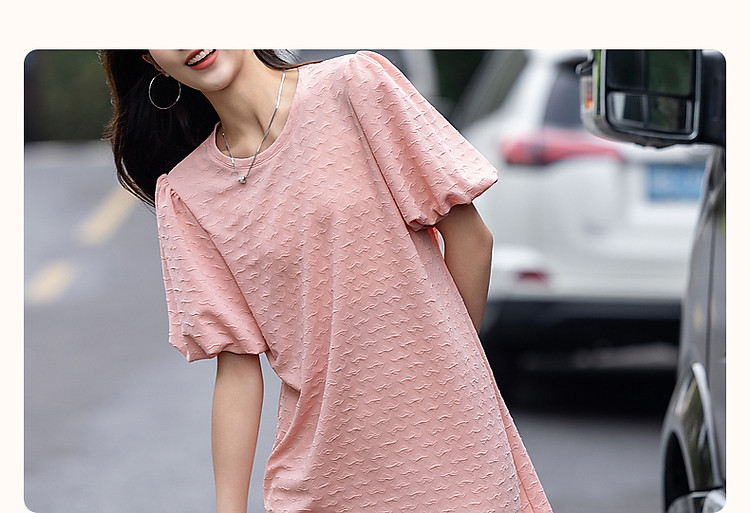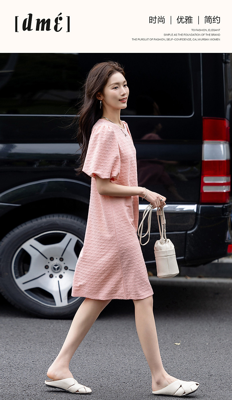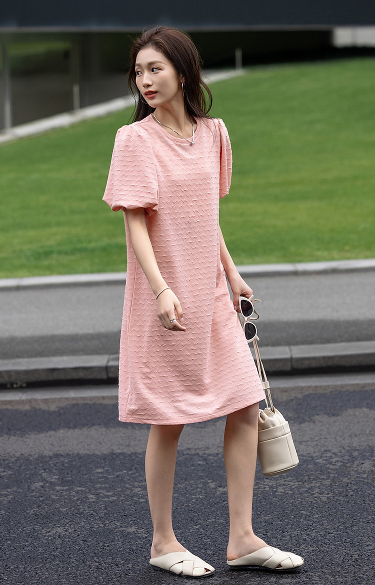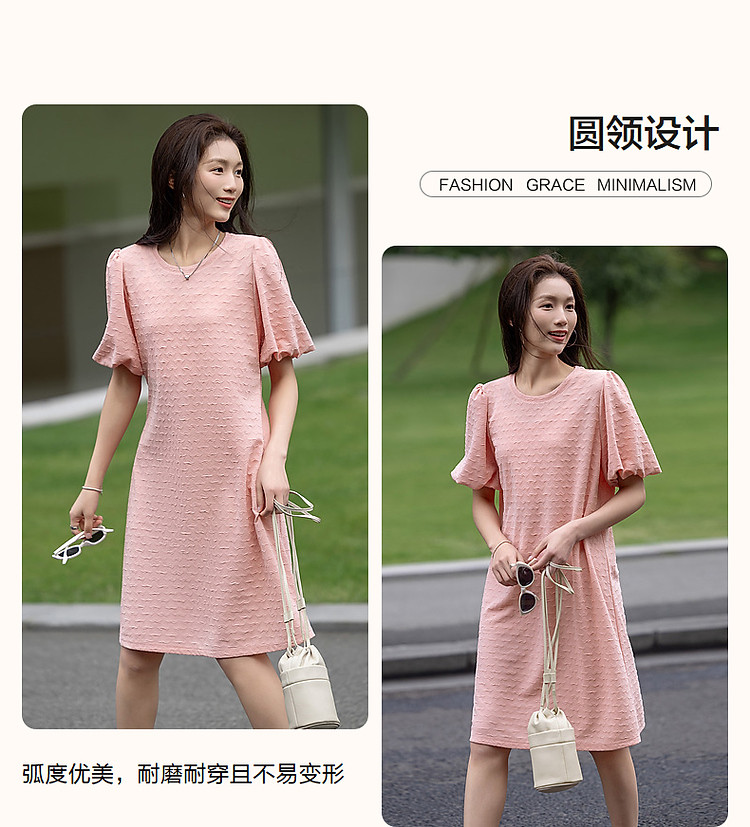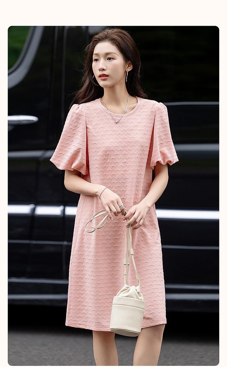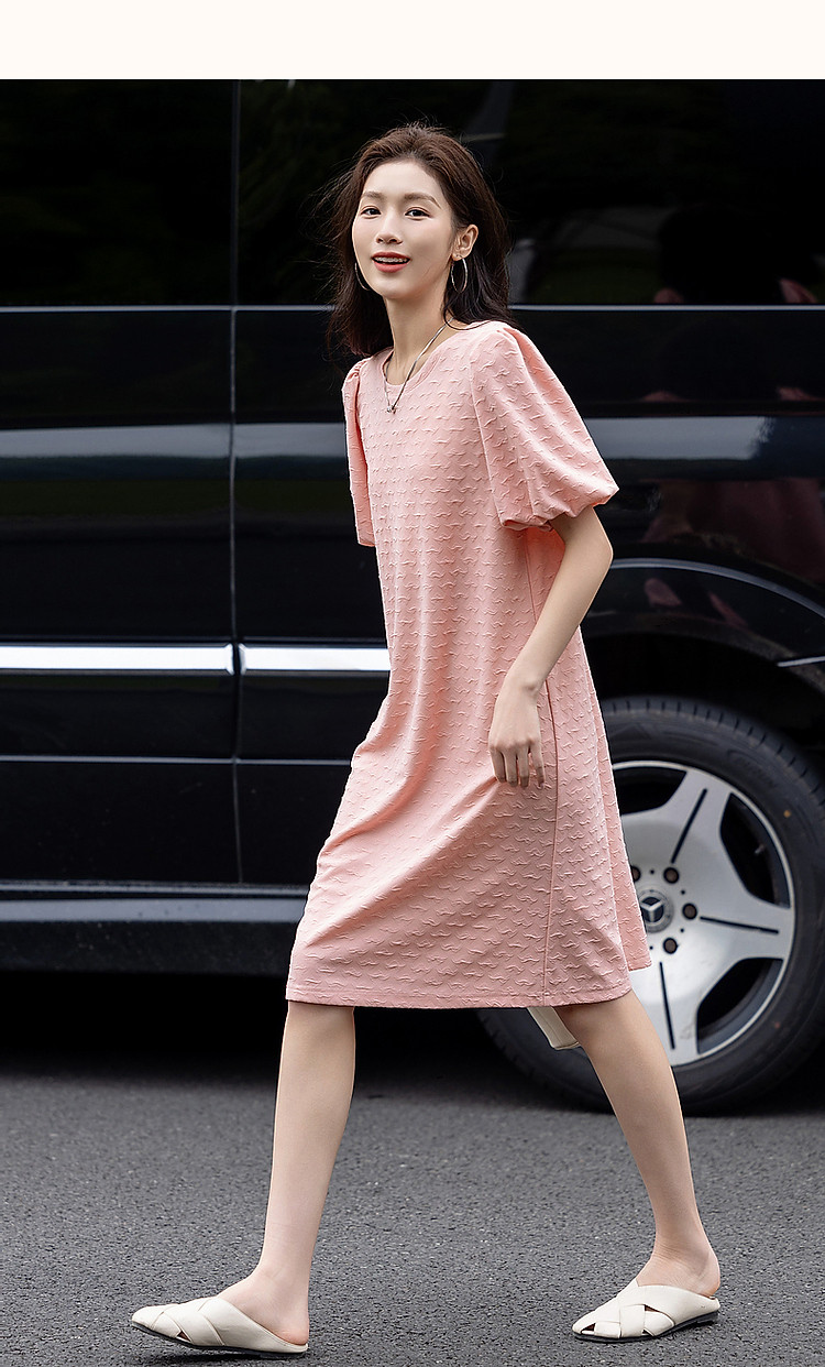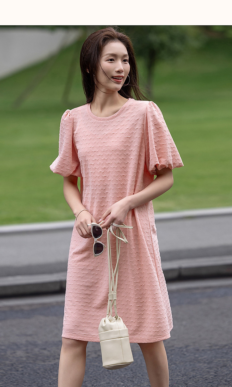 商品名称:【樱岛浮沫】夏多巴胺慵懒风小爱心肌理感泡泡袖针织女式连衣裙 017153
