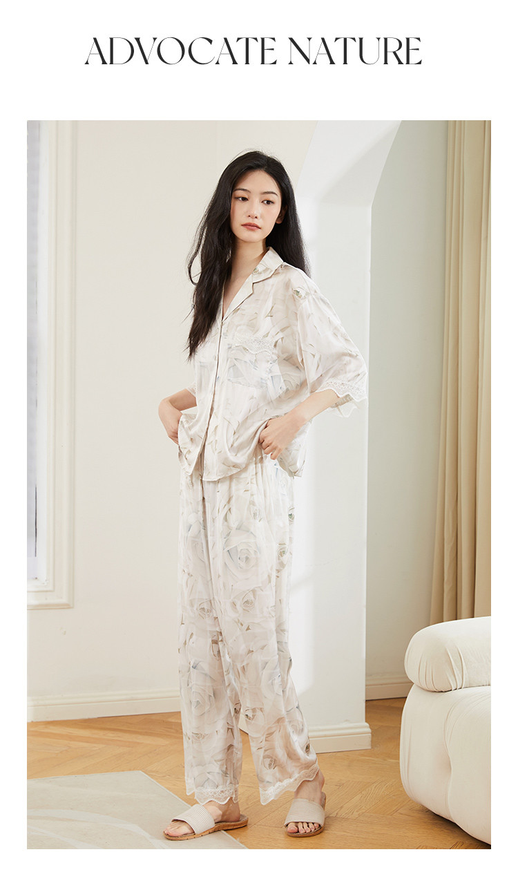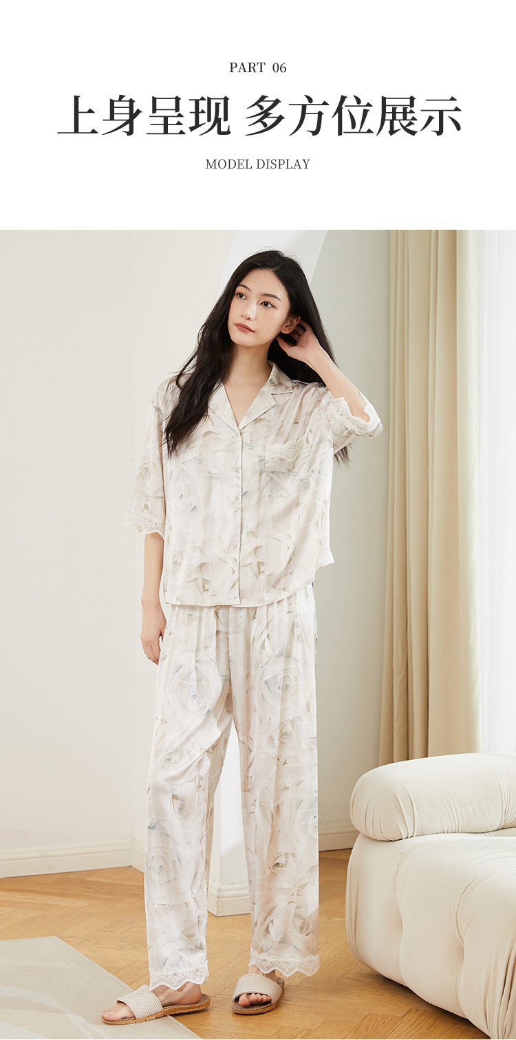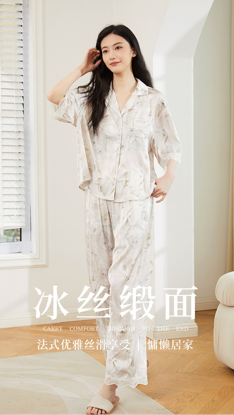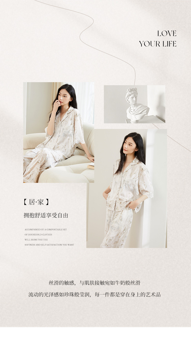 商品名称:【轻奢玫瑰印花】法式优雅五分袖睡衣女春夏可外穿开衫家居服套装 728331