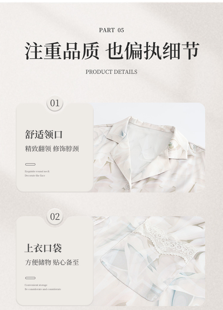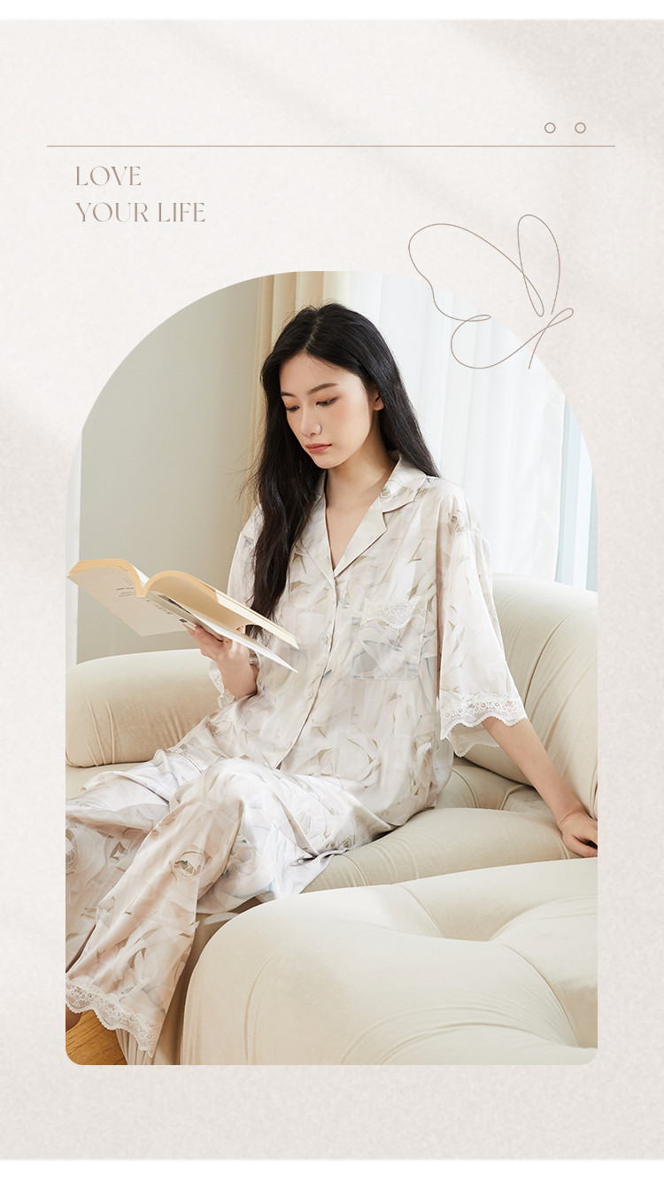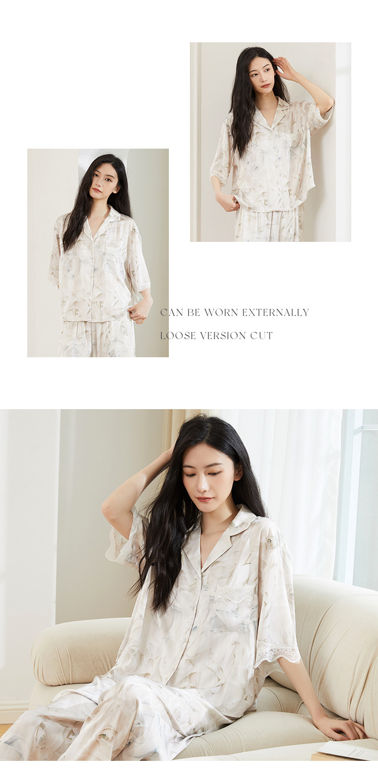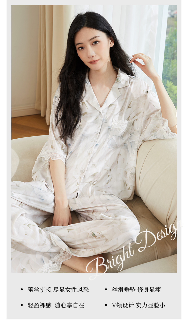 商品名称:【轻奢玫瑰印花】法式优雅五分袖睡衣女春夏可外穿开衫家居服套装 728331