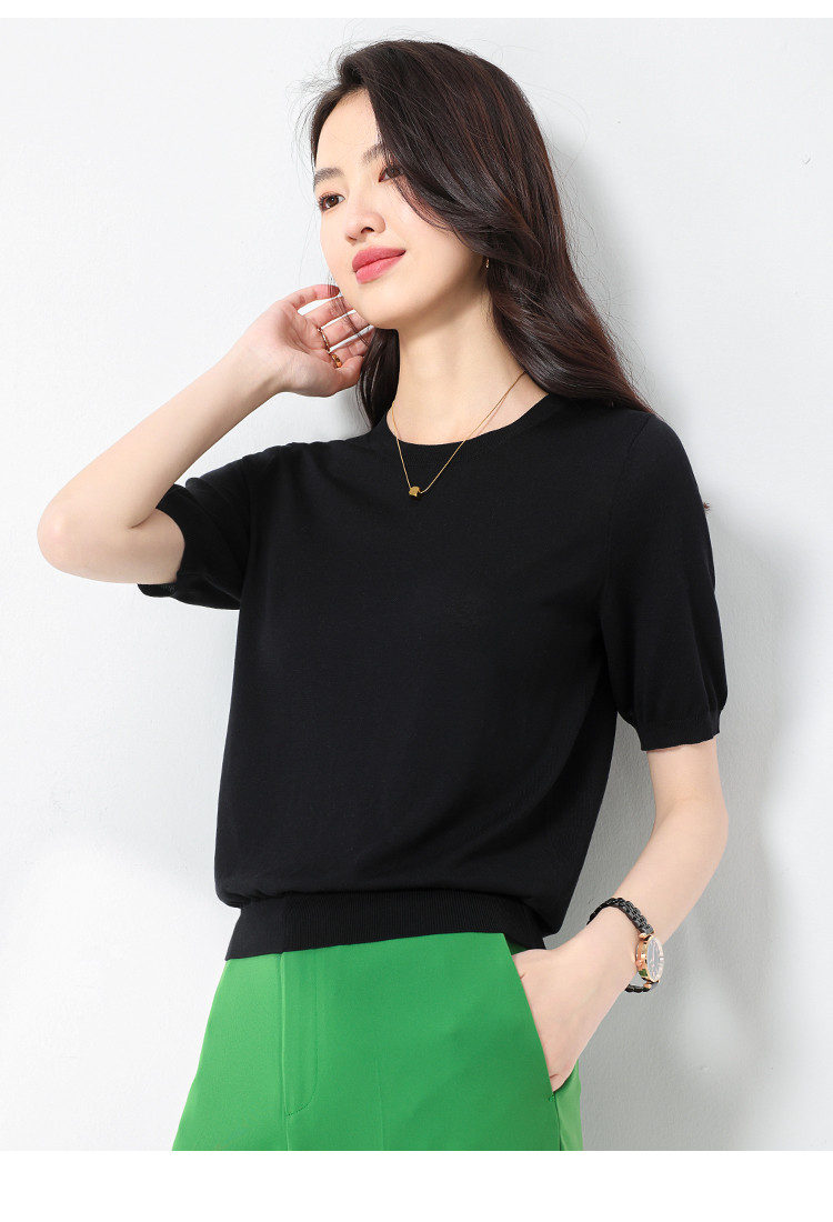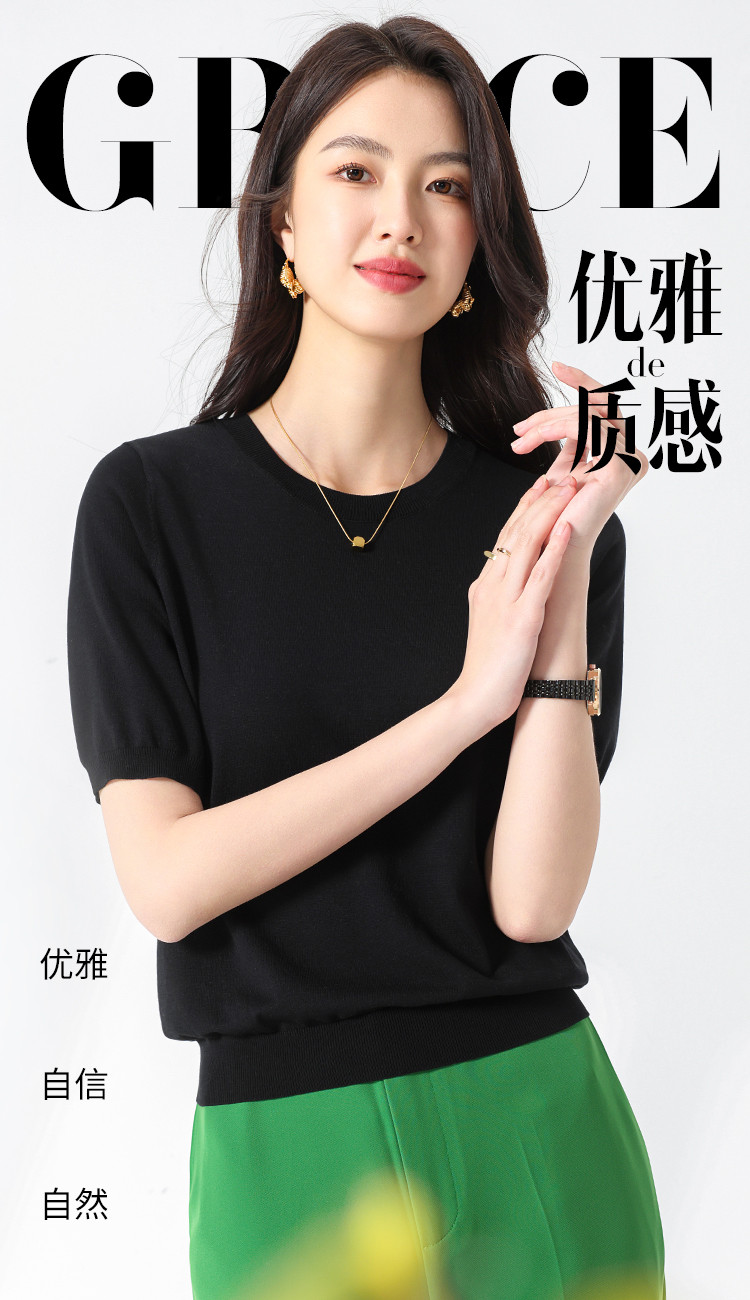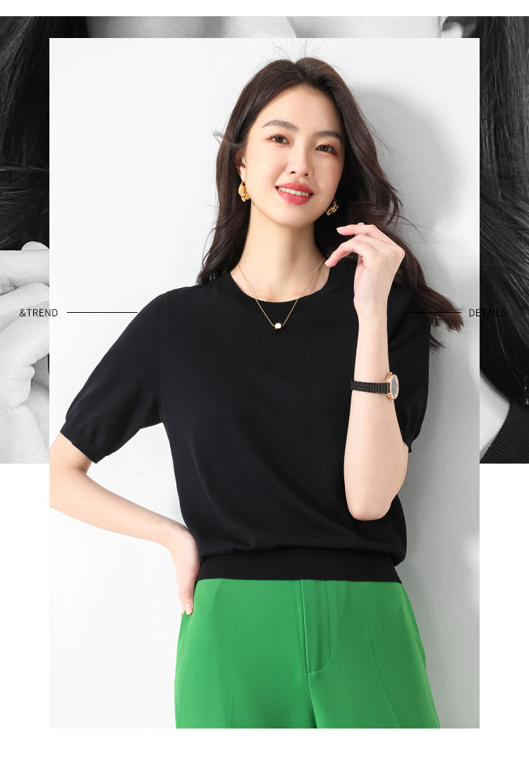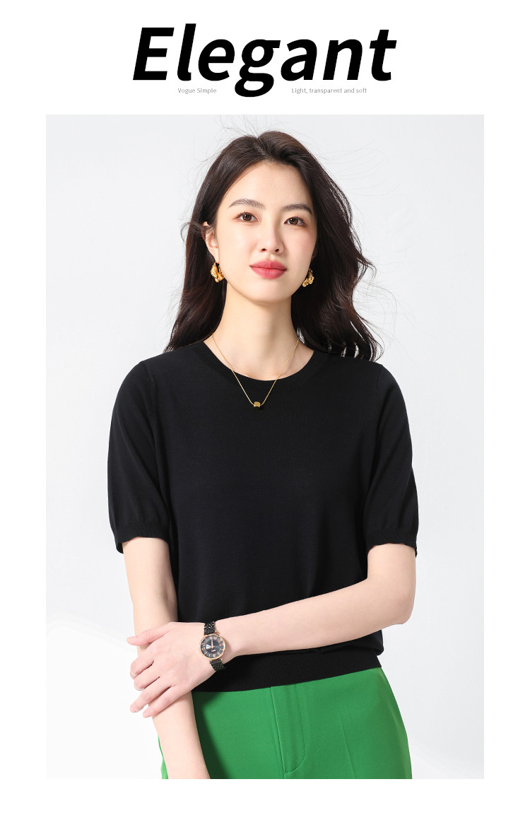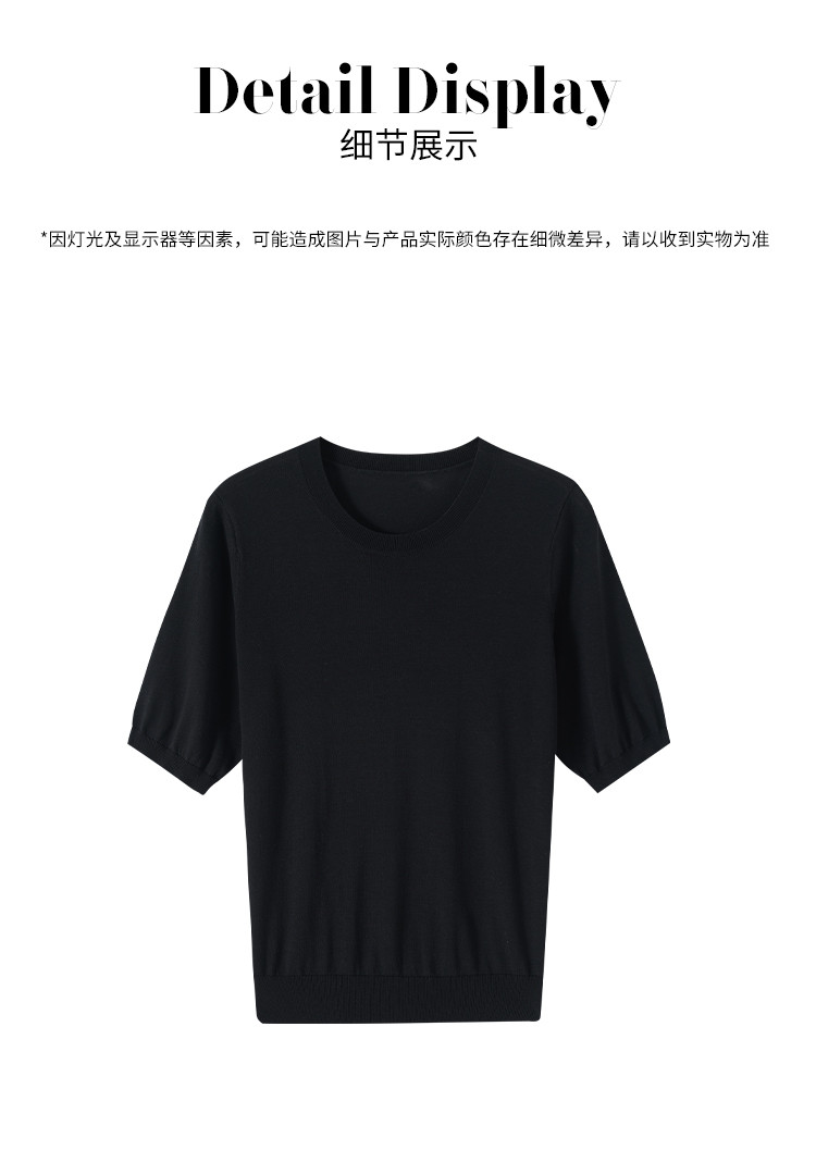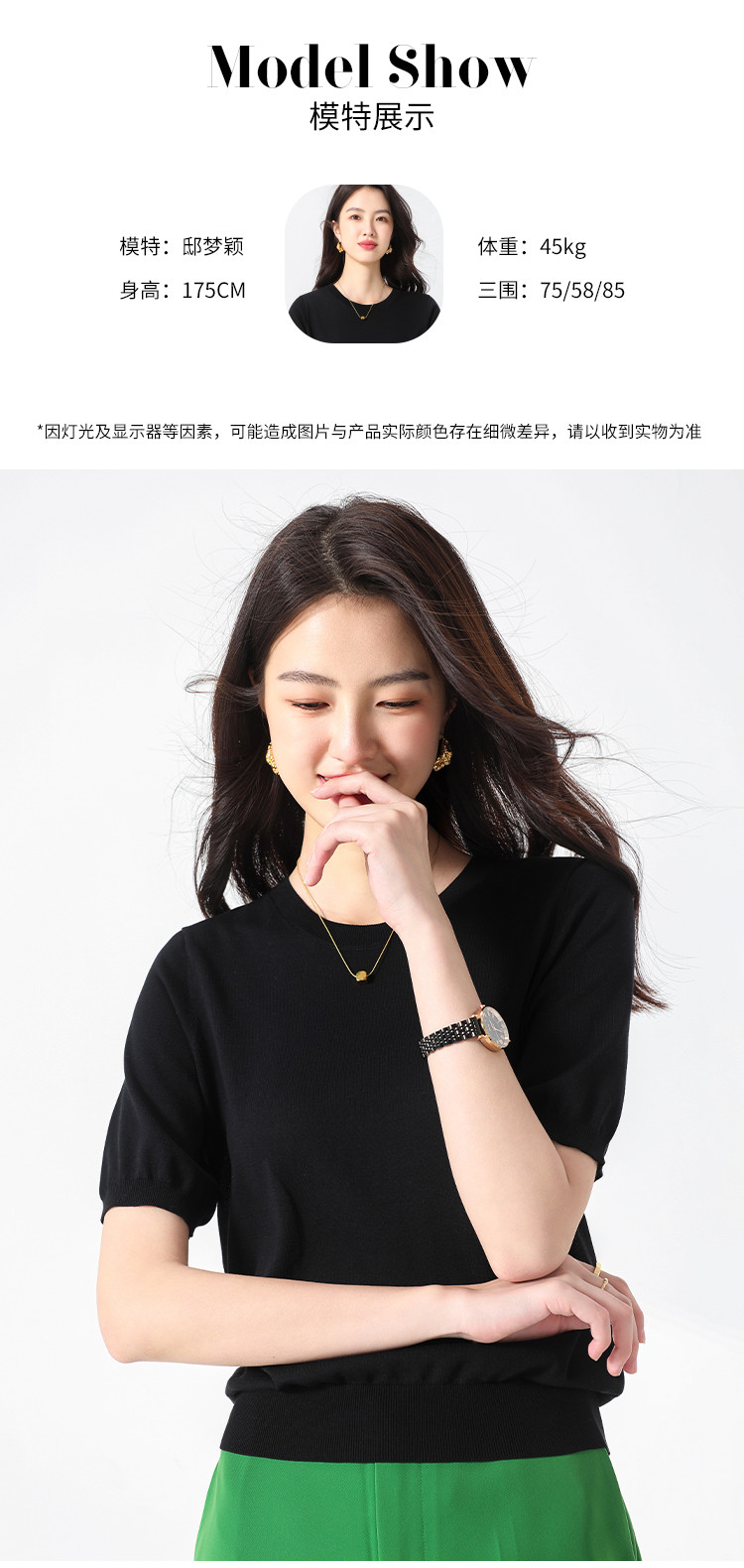 商品名称:【含桑蚕丝】轻薄透气基础百搭纯色圆领针织打底衫短袖T恤女夏 399763