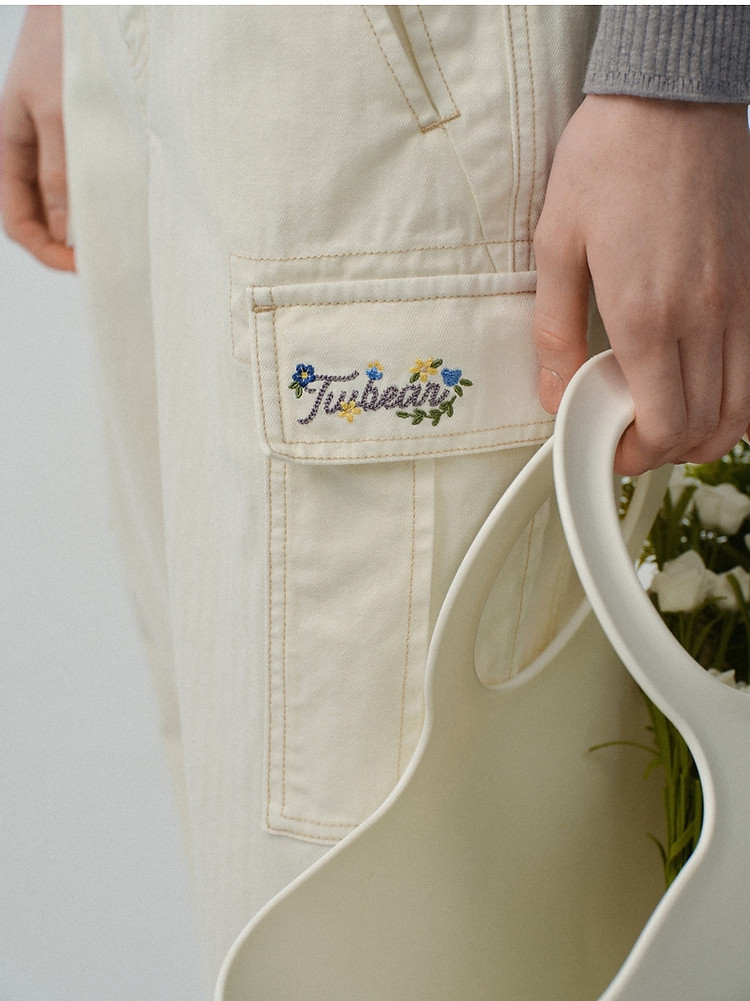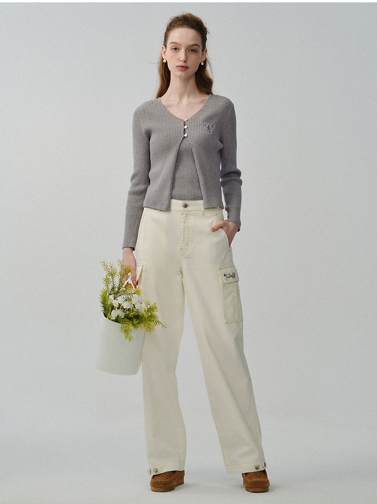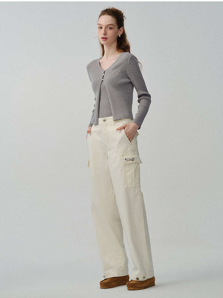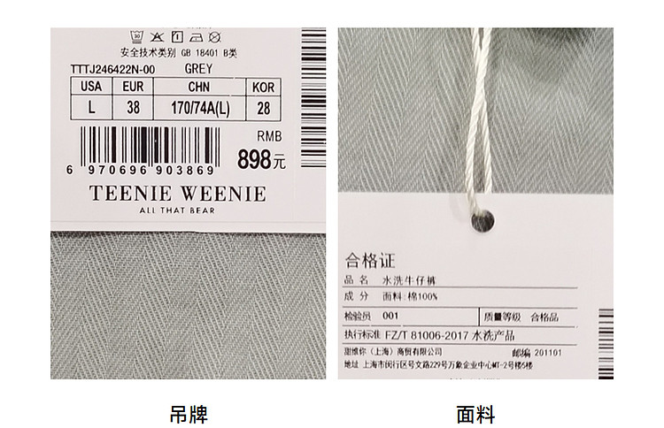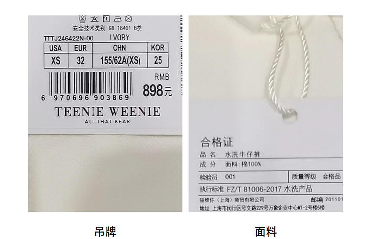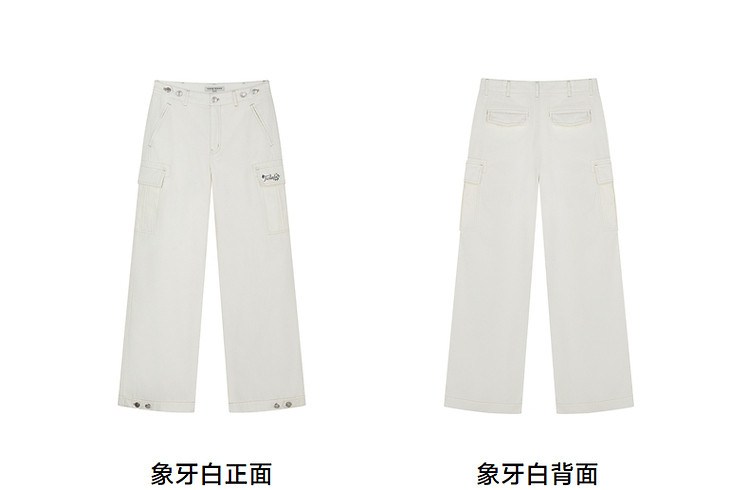 商品名称:小熊女装时髦宽松直筒工装风牛仔裤长裤 190401