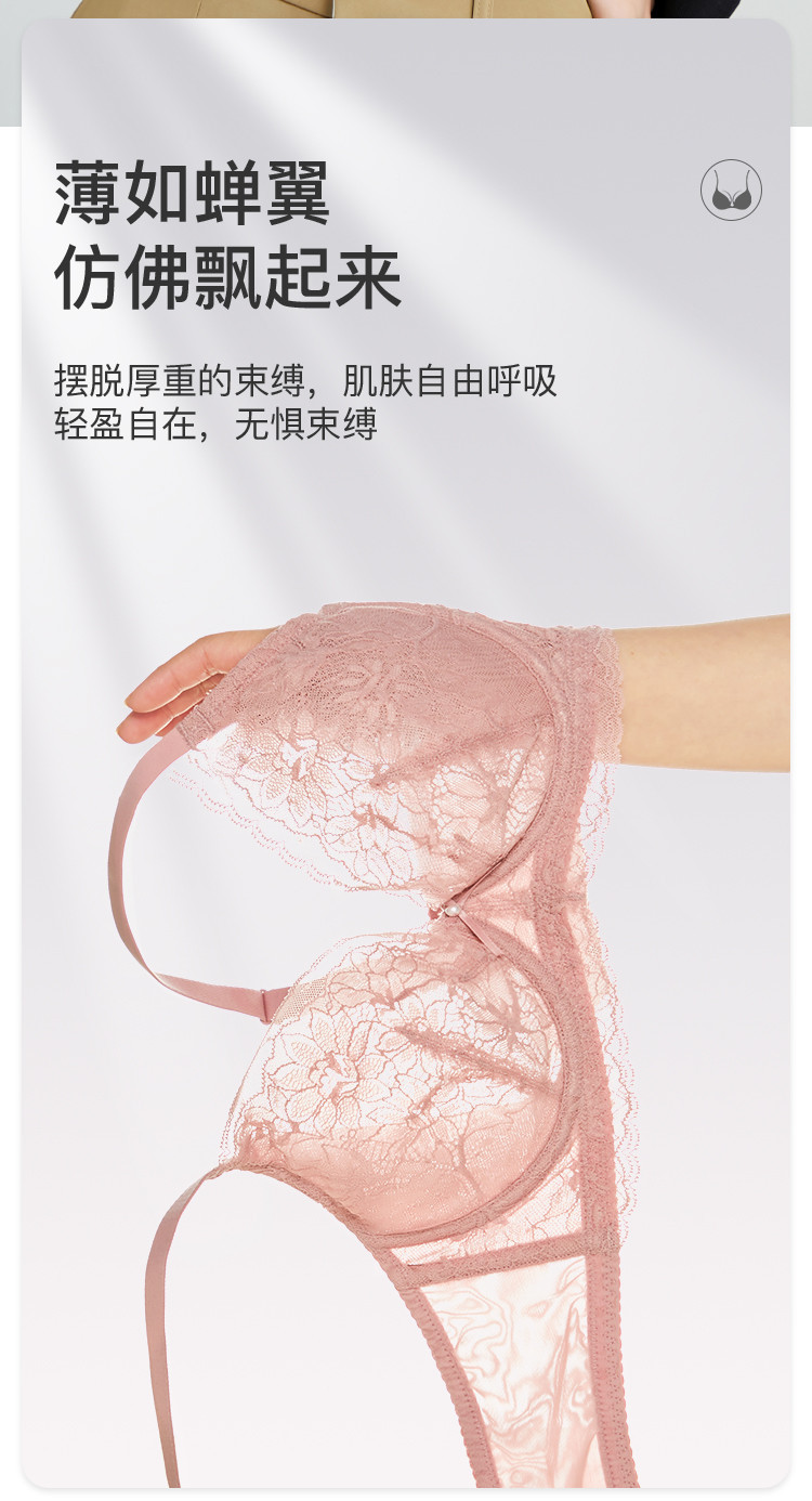商品名称:捡漏【花瓣蕾丝内衣】大胸显小文胸女士内衣薄杯性感透气文胸罩女 083851