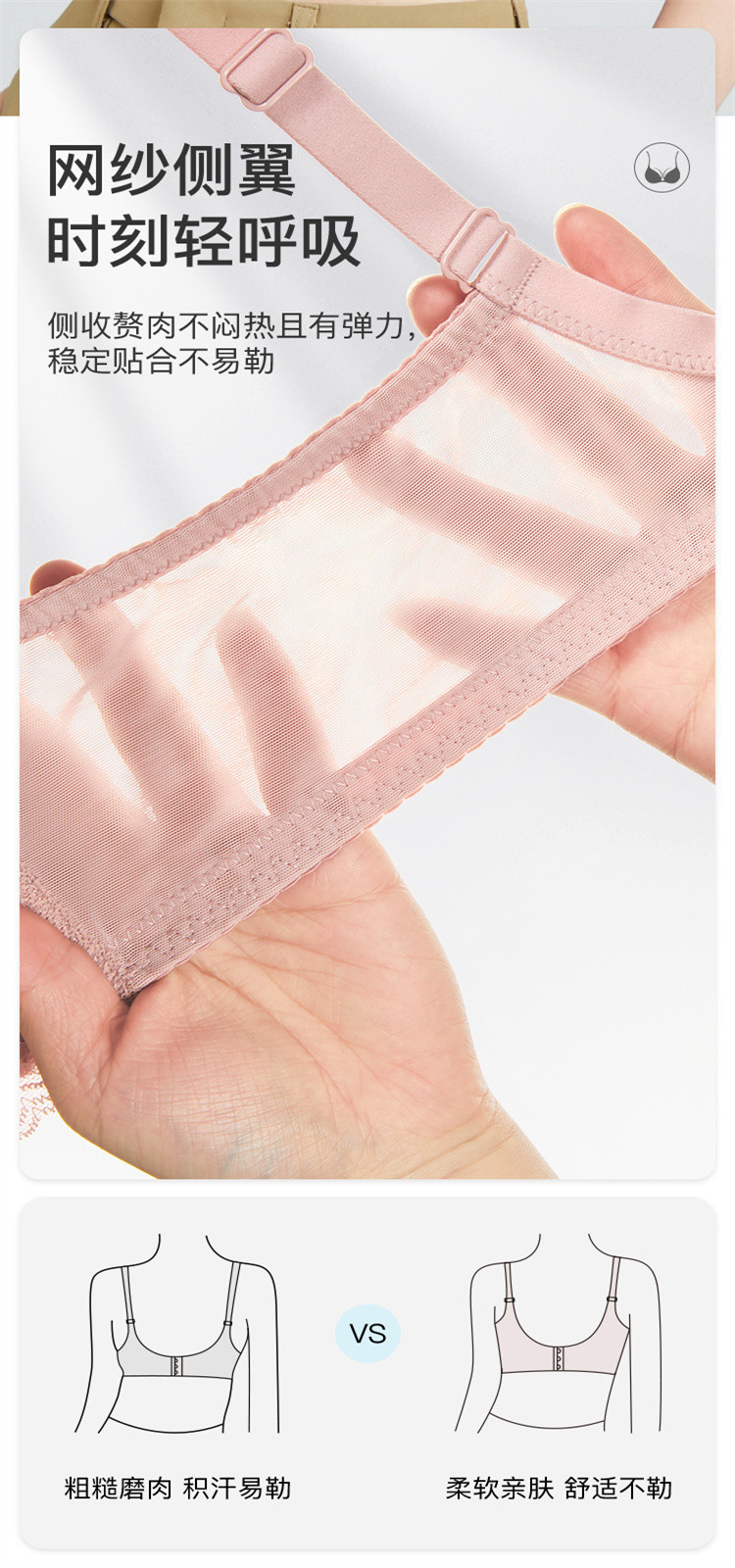 【透气】镂空环抱网纱聚拢软支撑背勾文胸无钢圈内衣女 822720