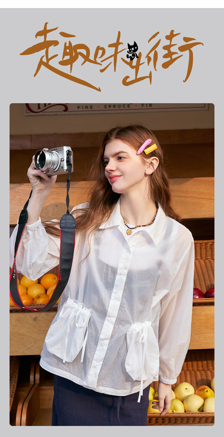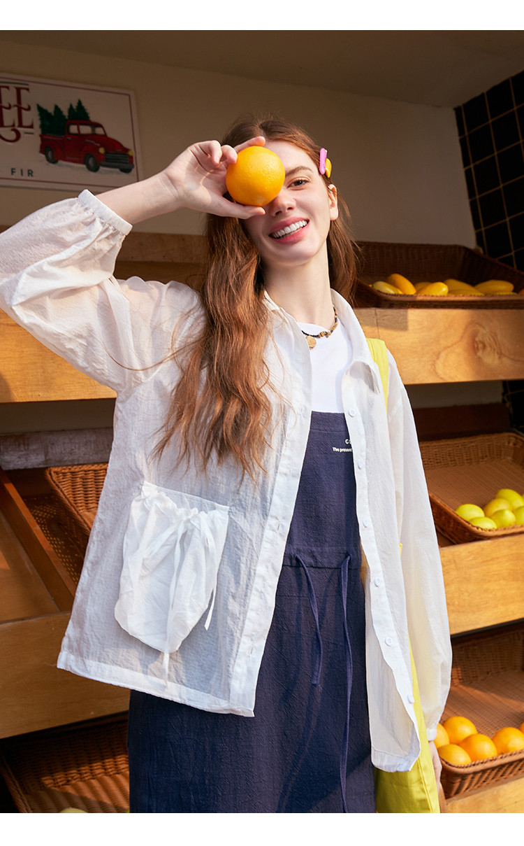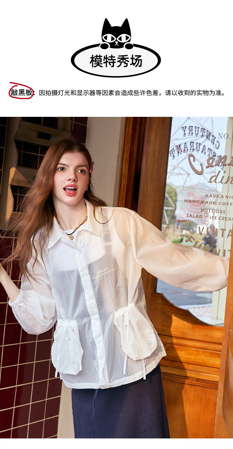 轻薄大口袋休闲气质设计长袖上衣夏季百搭女式外套 626717