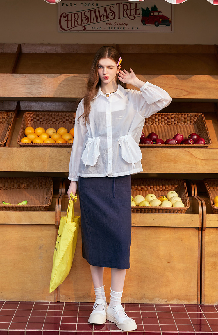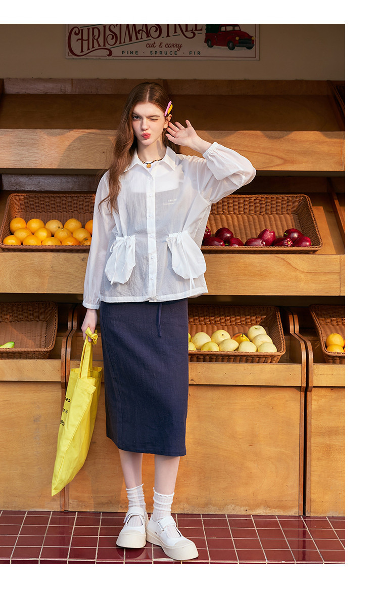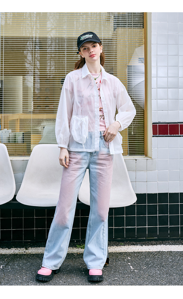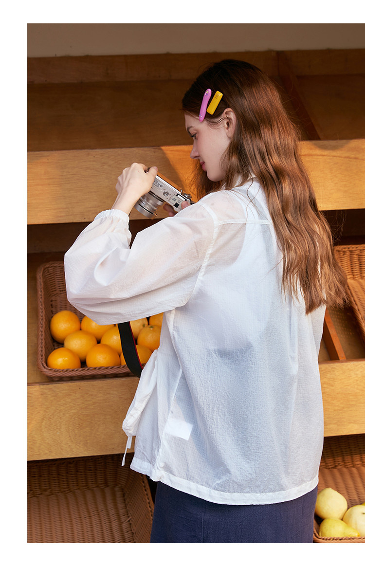 轻薄大口袋休闲气质设计长袖上衣夏季百搭女式外套 626717