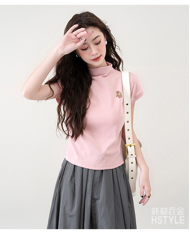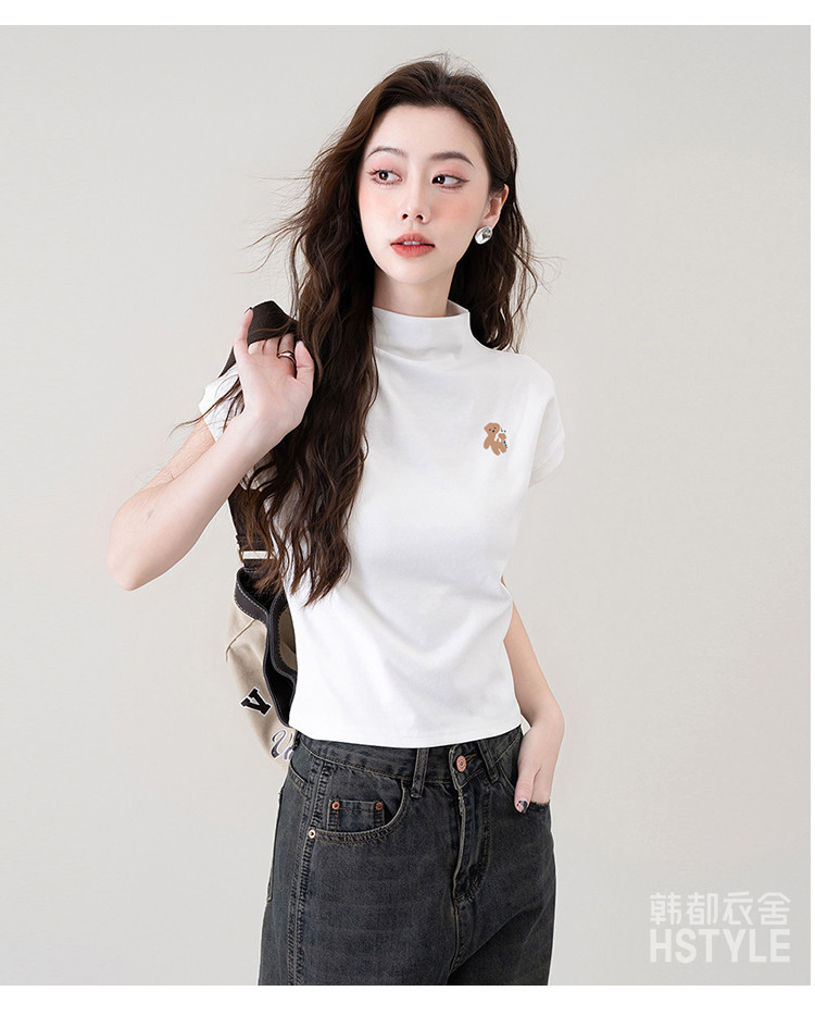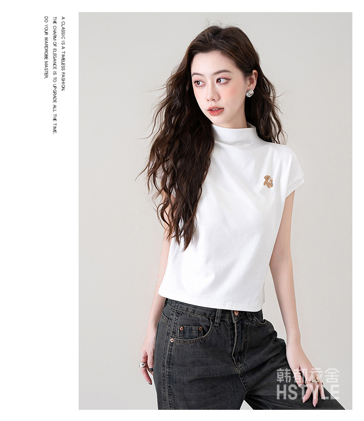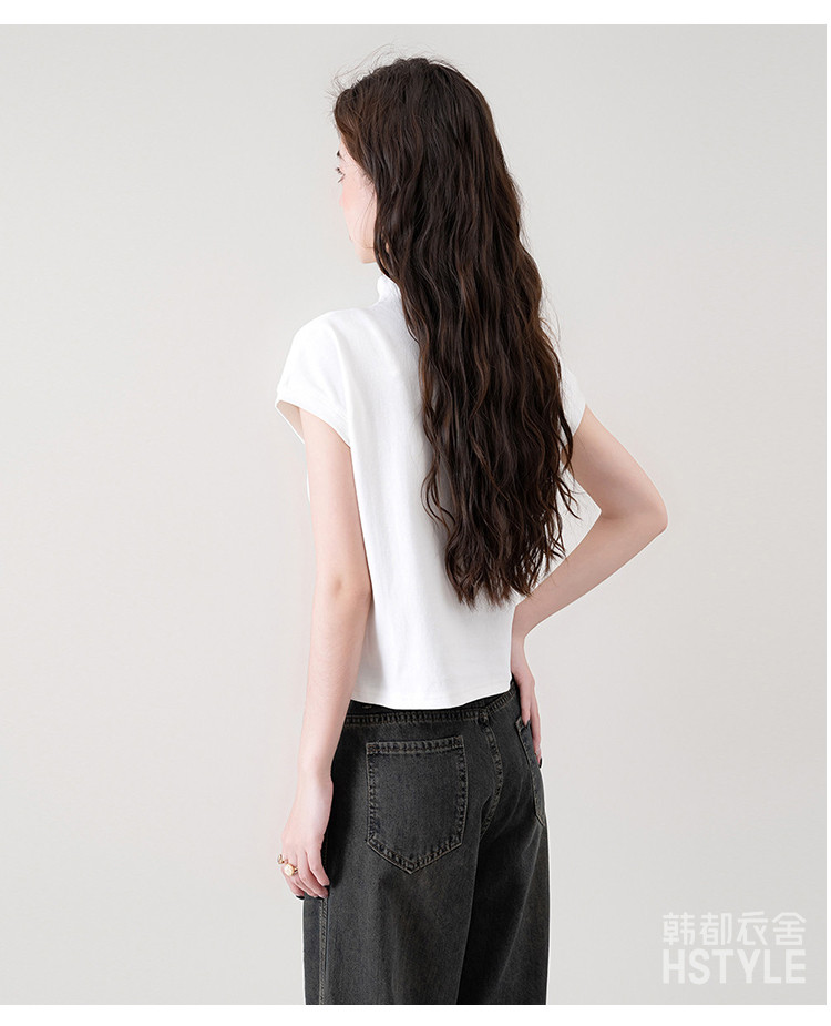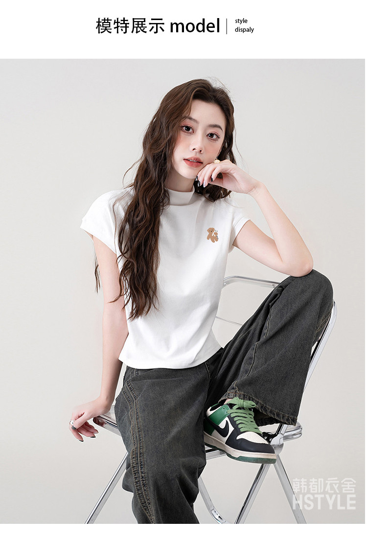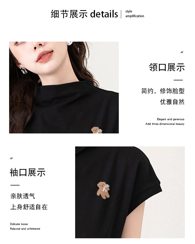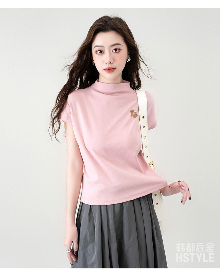 半高领小飞袖上衣印花舒适内搭春季款女式T恤休闲时尚 880075