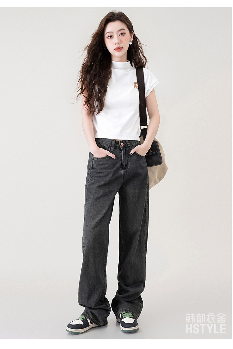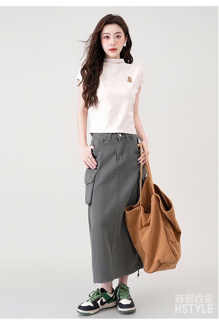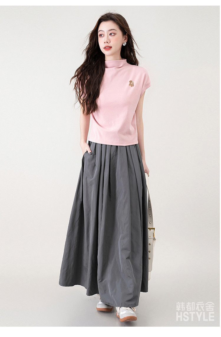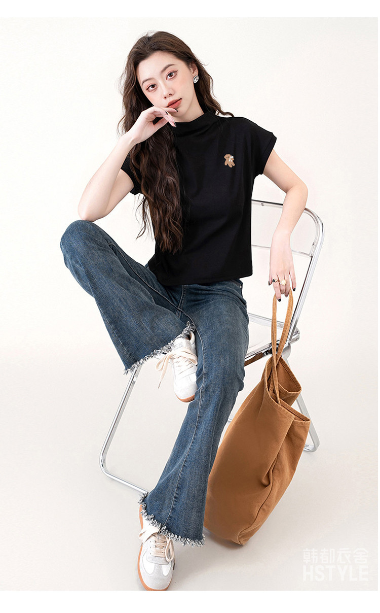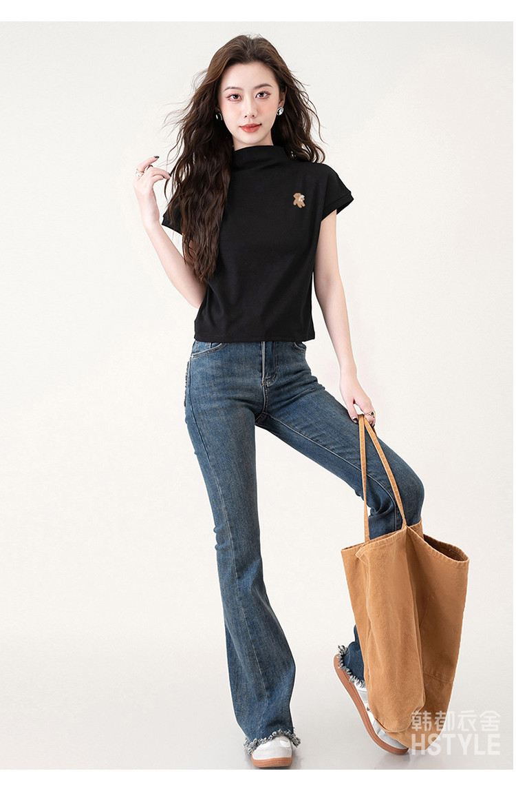 半高领小飞袖上衣印花舒适内搭春季款女式T恤休闲时尚 880075