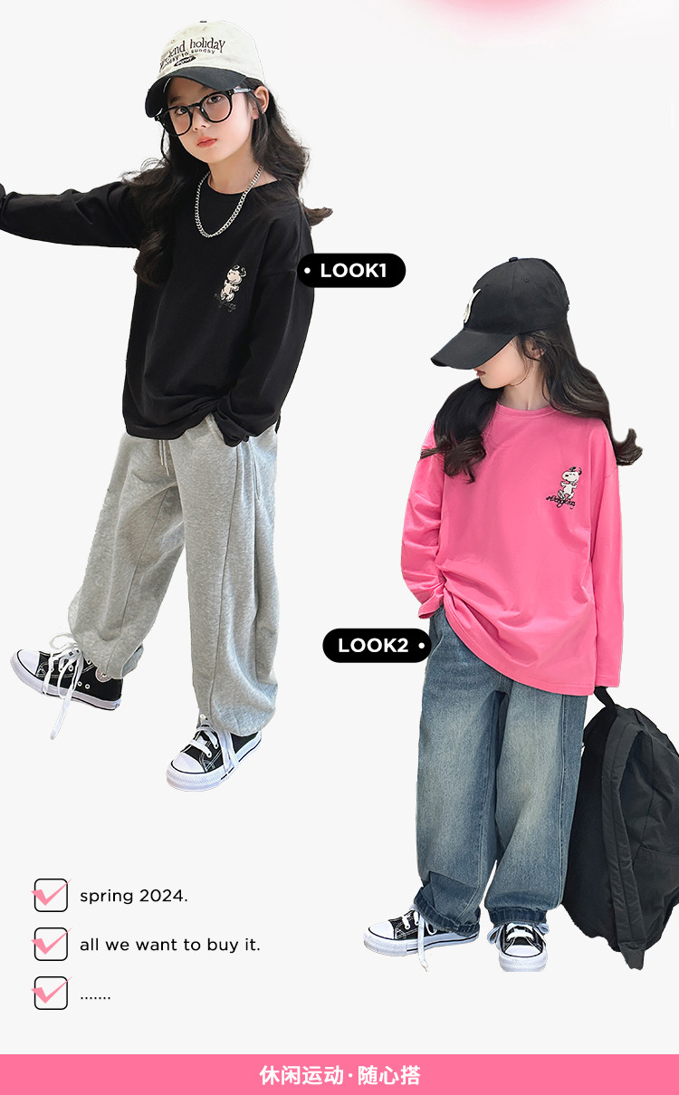 [中长款百搭长T】春季中大童T恤女童T恤女童打底衫 611288