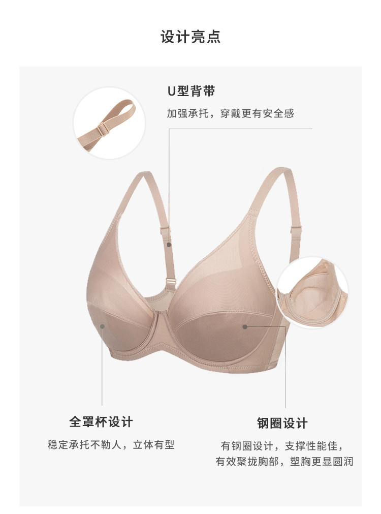 商品名称:【大胸显小显瘦】无痕聚拢防下垂上托收副乳女士内衣文胸 600906