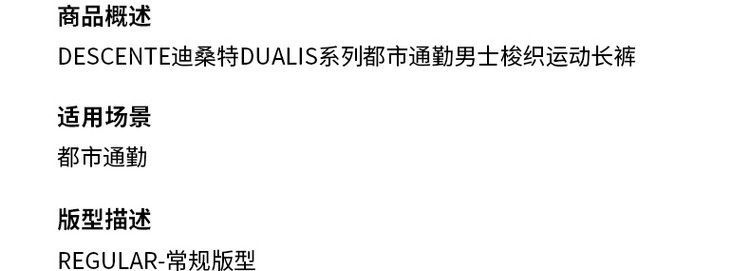 商品名称:DESCENTE迪桑特市通勤男士廓形梭织运动长裤 190616