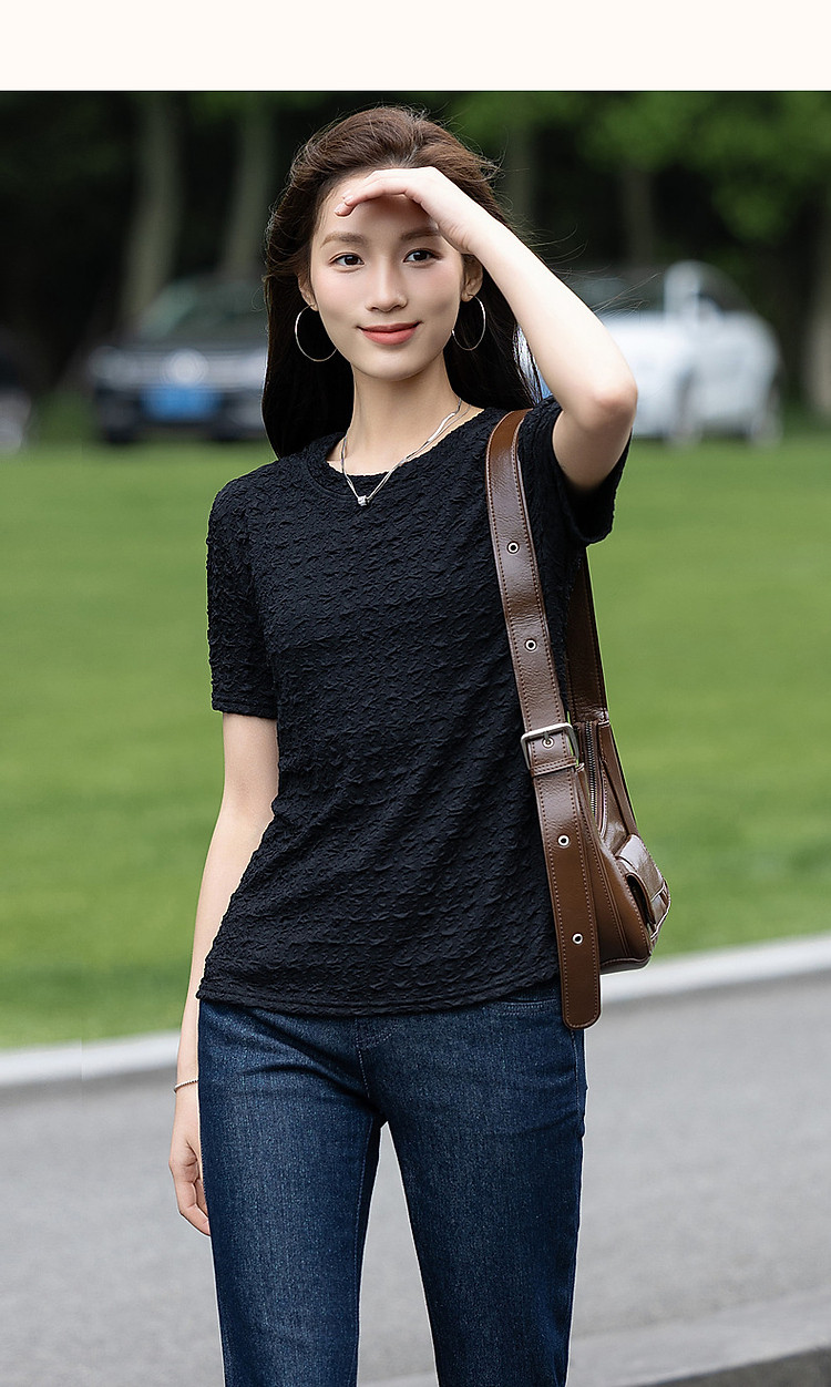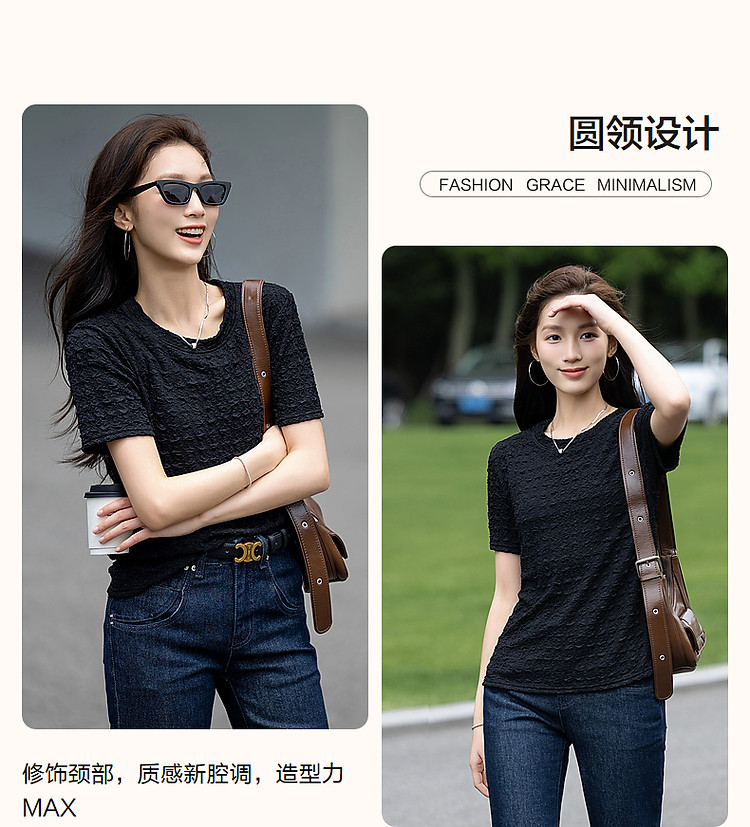 商品名称:【泡芙t恤】夏圈粉无数简约风通勤圆领短袖显瘦藏肉女式t恤 891137