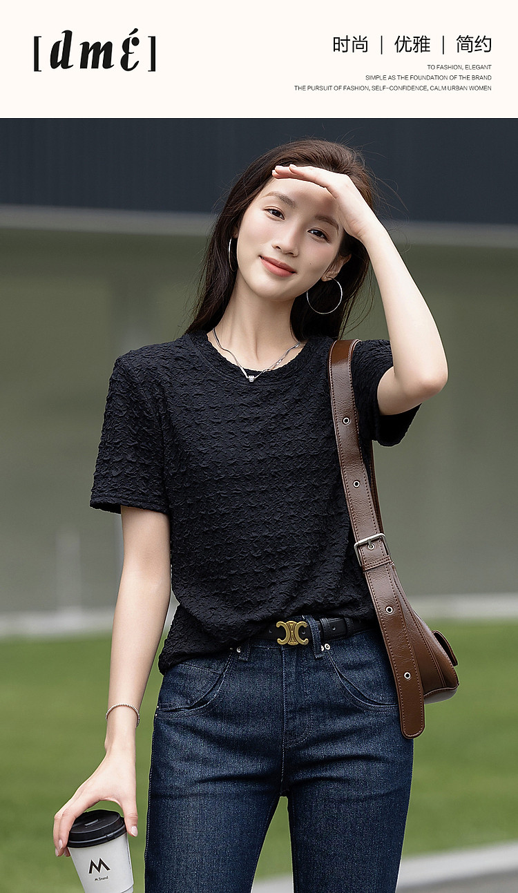 【泡芙t恤】夏圈粉无数简约风通勤圆领短袖显瘦藏肉女式t恤 891137