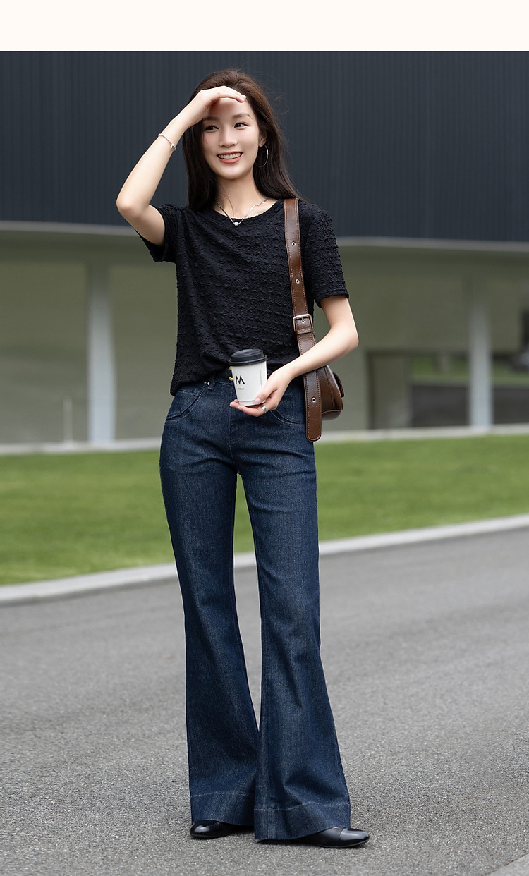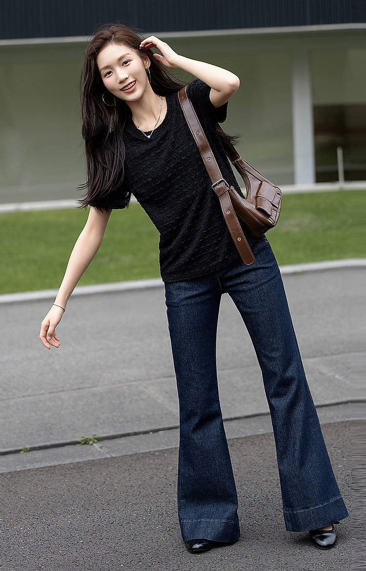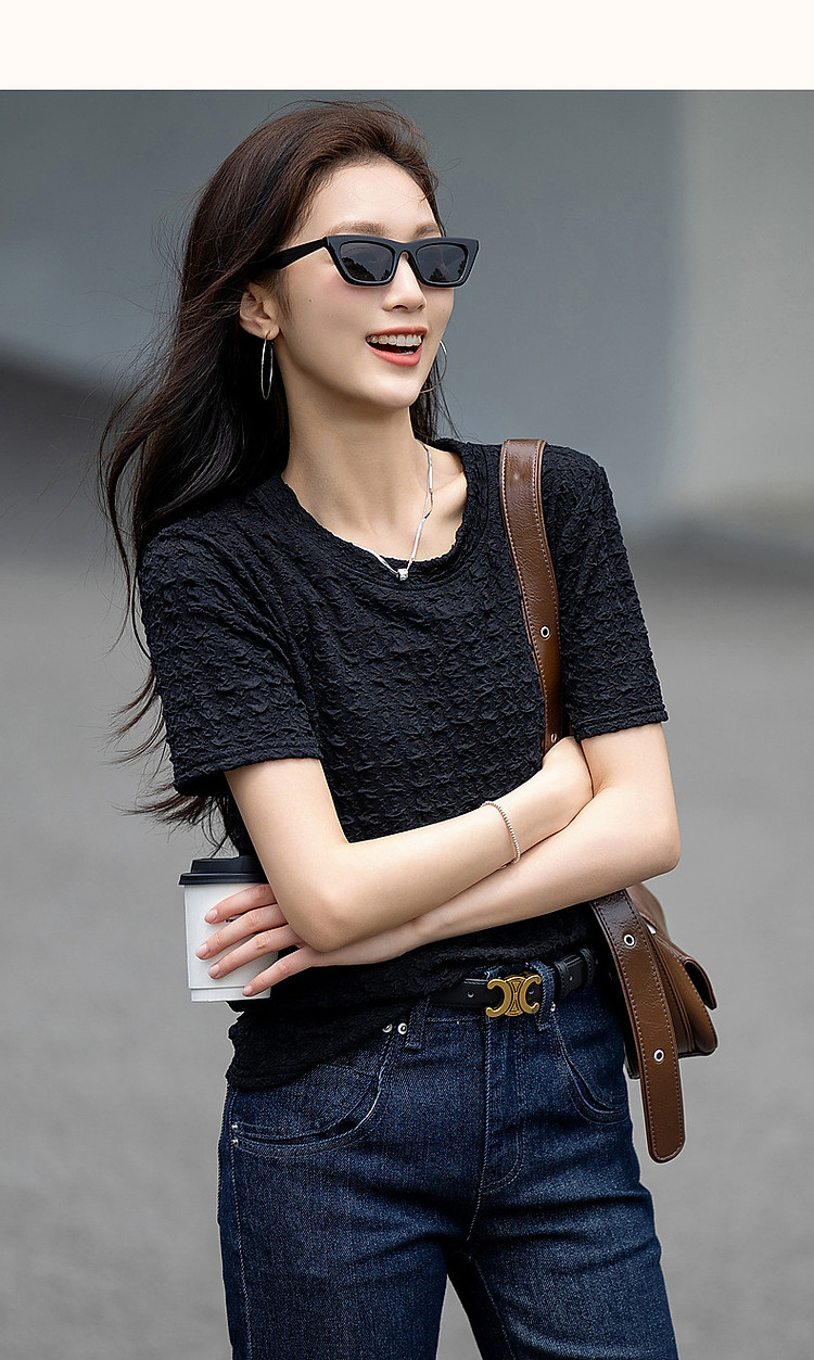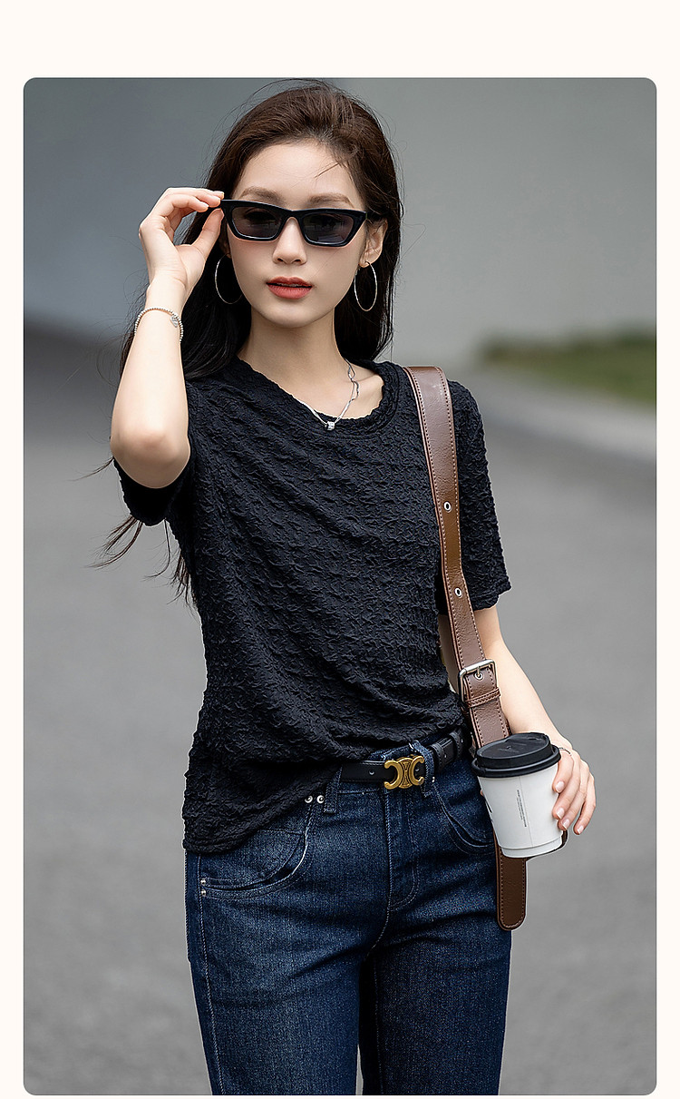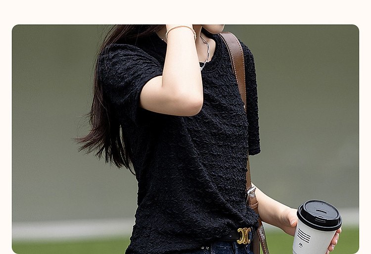 纹理感弹性针织面料皮印印花正肩显瘦女式T恤夏季短袖 691357