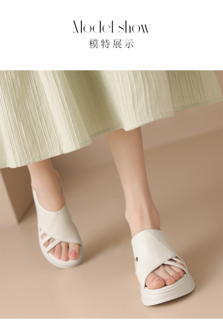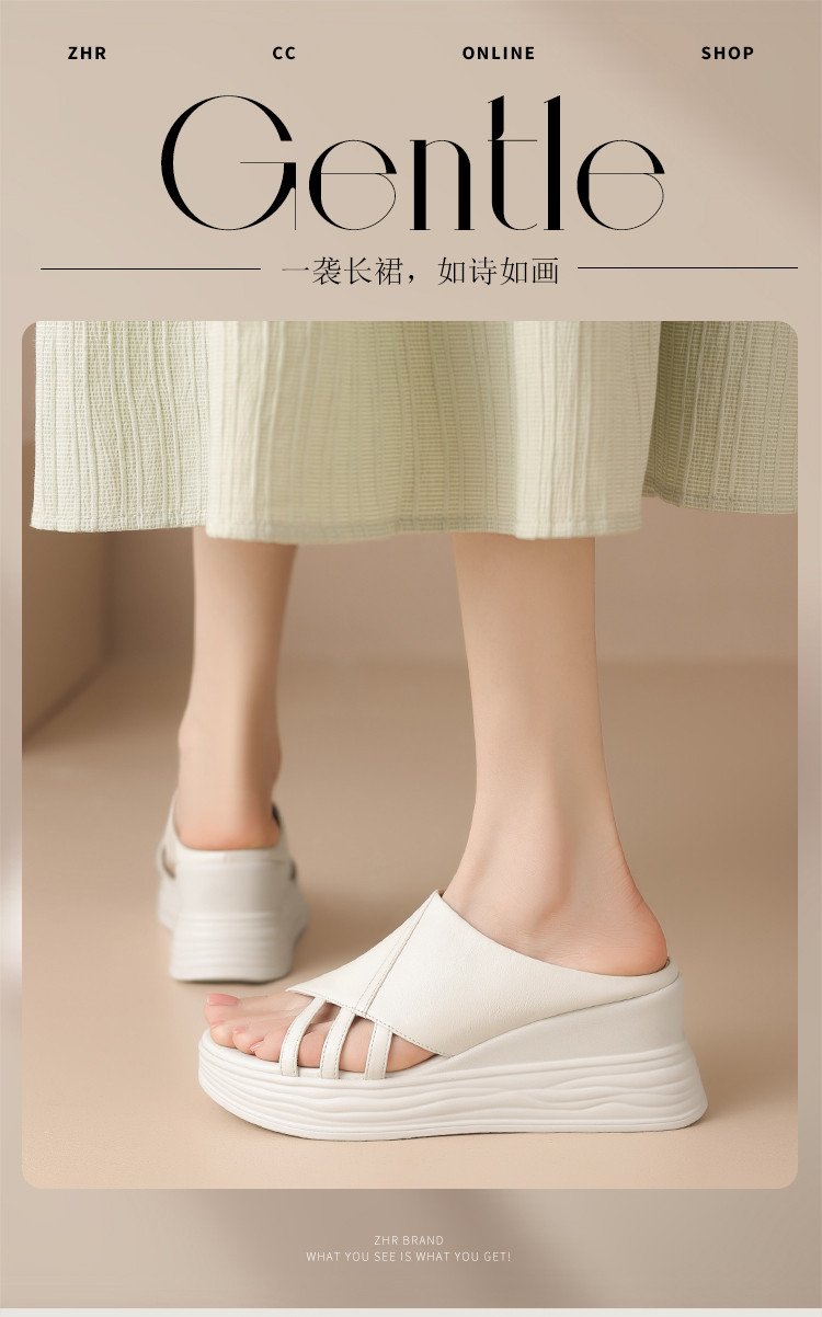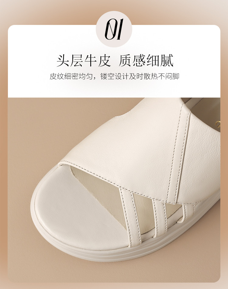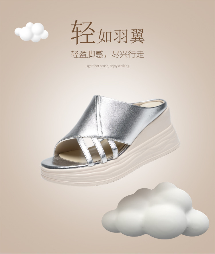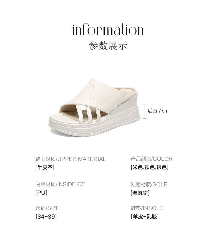 商品名称:【头层牛皮】拼接镂空凉拖鞋透气坡跟拖鞋增高显瘦拖鞋女外穿夏季 521728
