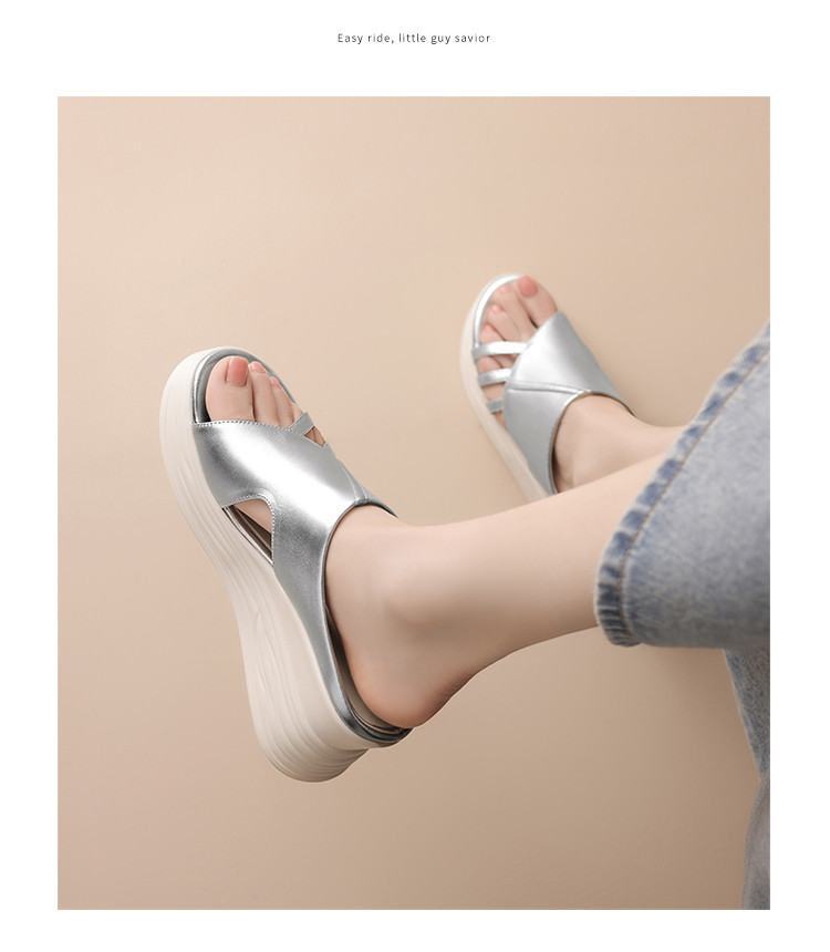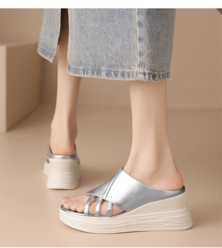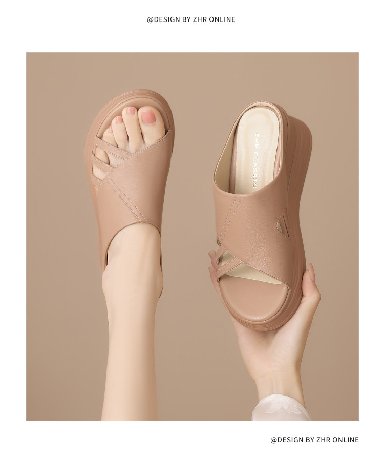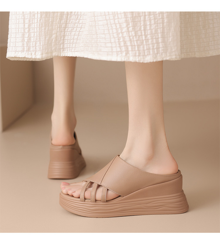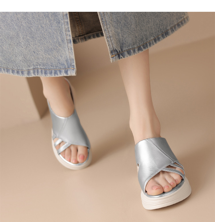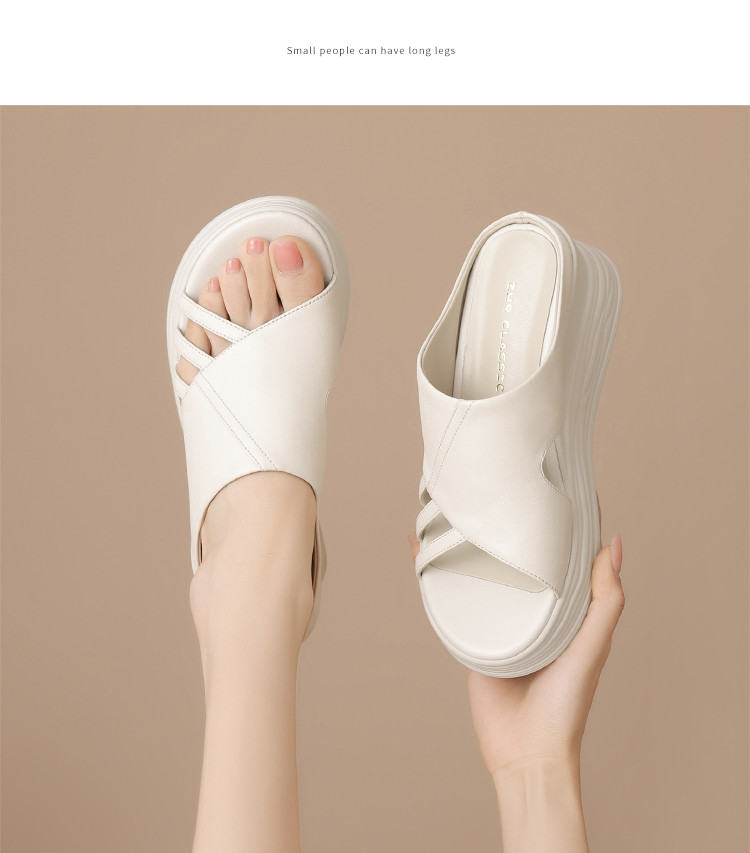 商品名称:【头层牛皮】拼接镂空凉拖鞋透气坡跟拖鞋增高显瘦拖鞋女外穿夏季 521728