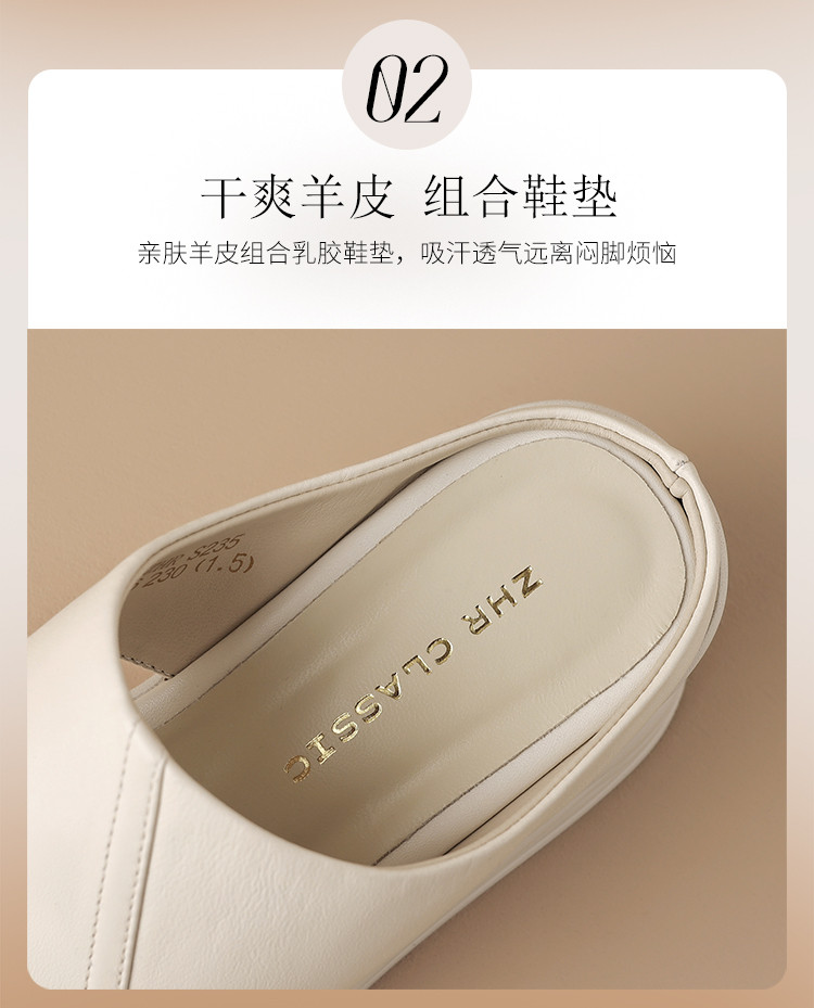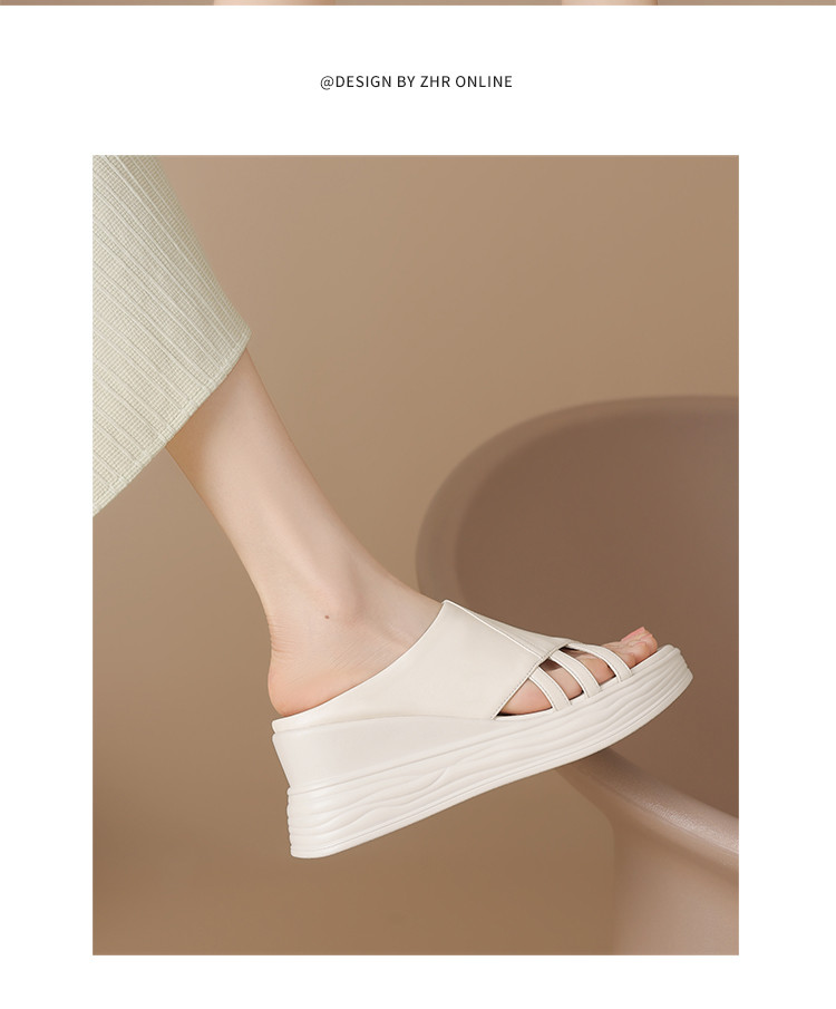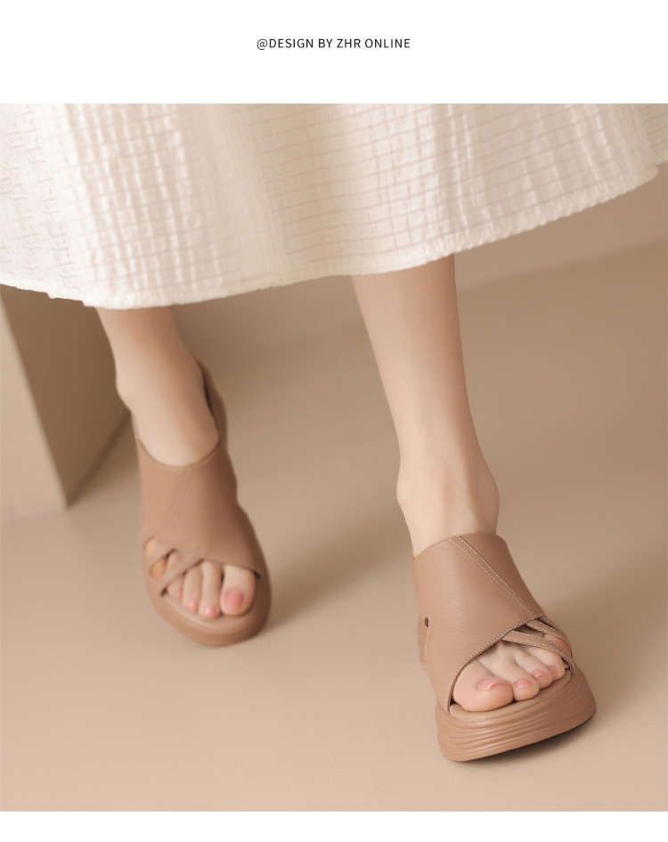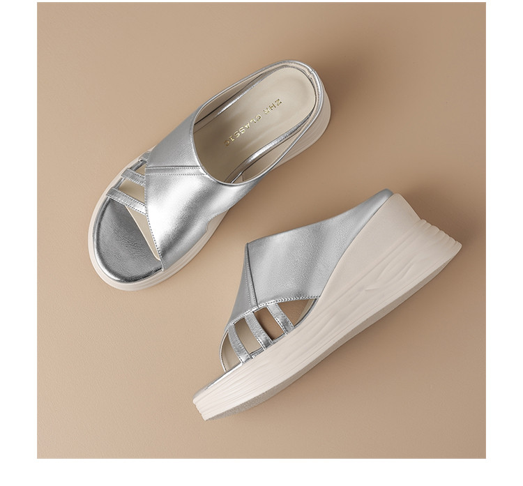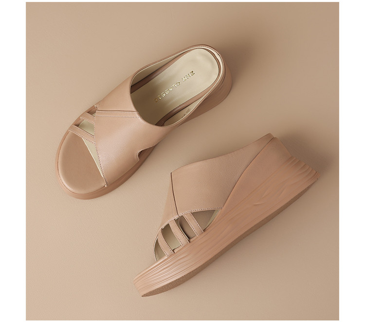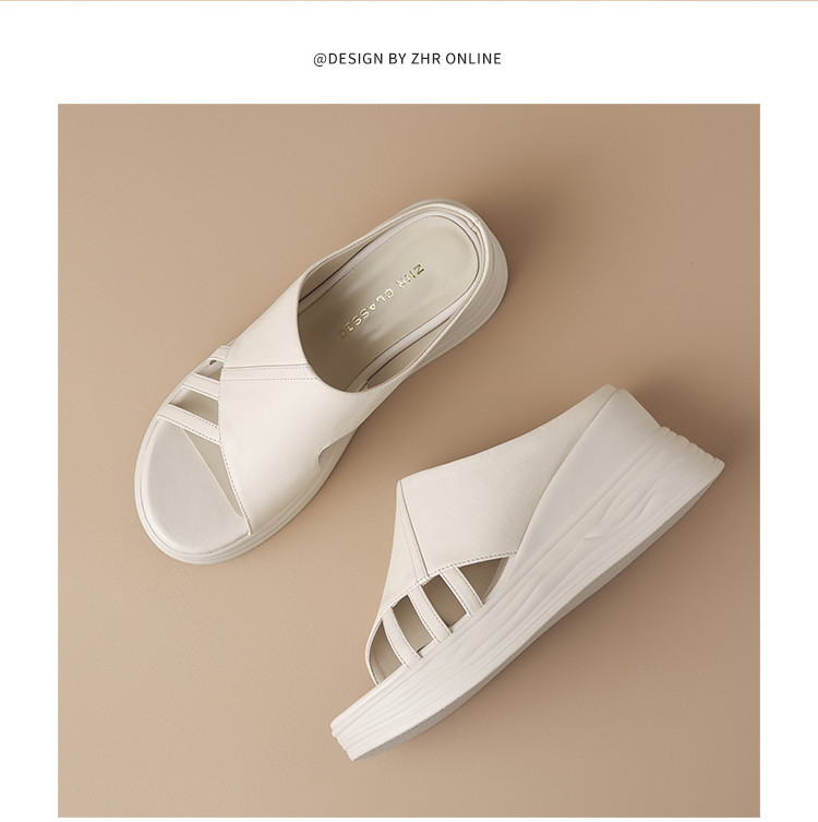 【头层牛皮】拼接镂空凉拖鞋透气坡跟拖鞋增高显瘦拖鞋女外穿夏季 521728