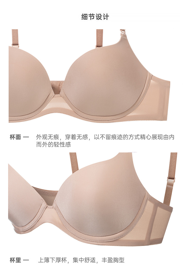 商品名称:【热销光面无痕】聚拢上托收副乳柔软舒适文胸罩透气薄款女 498058