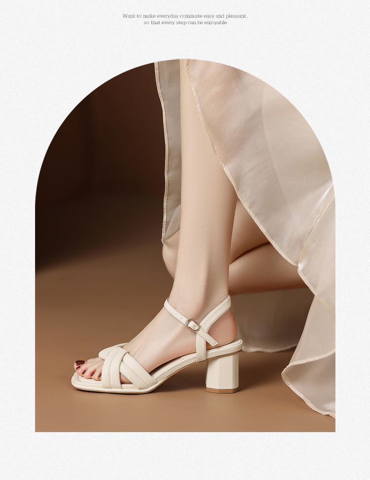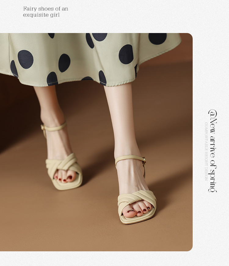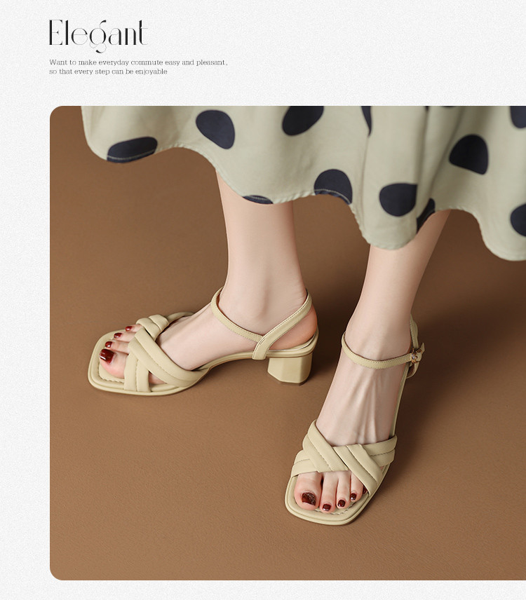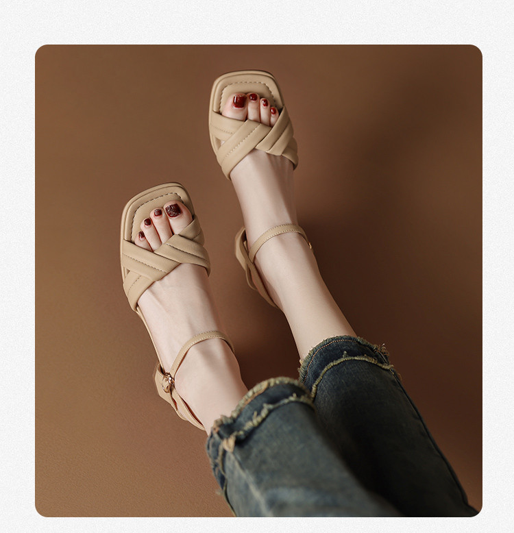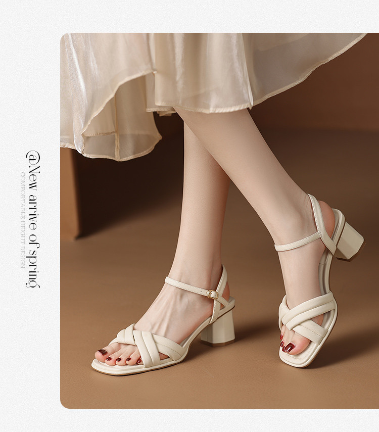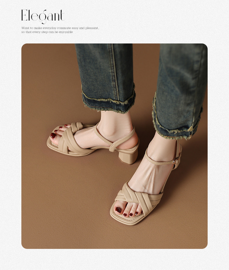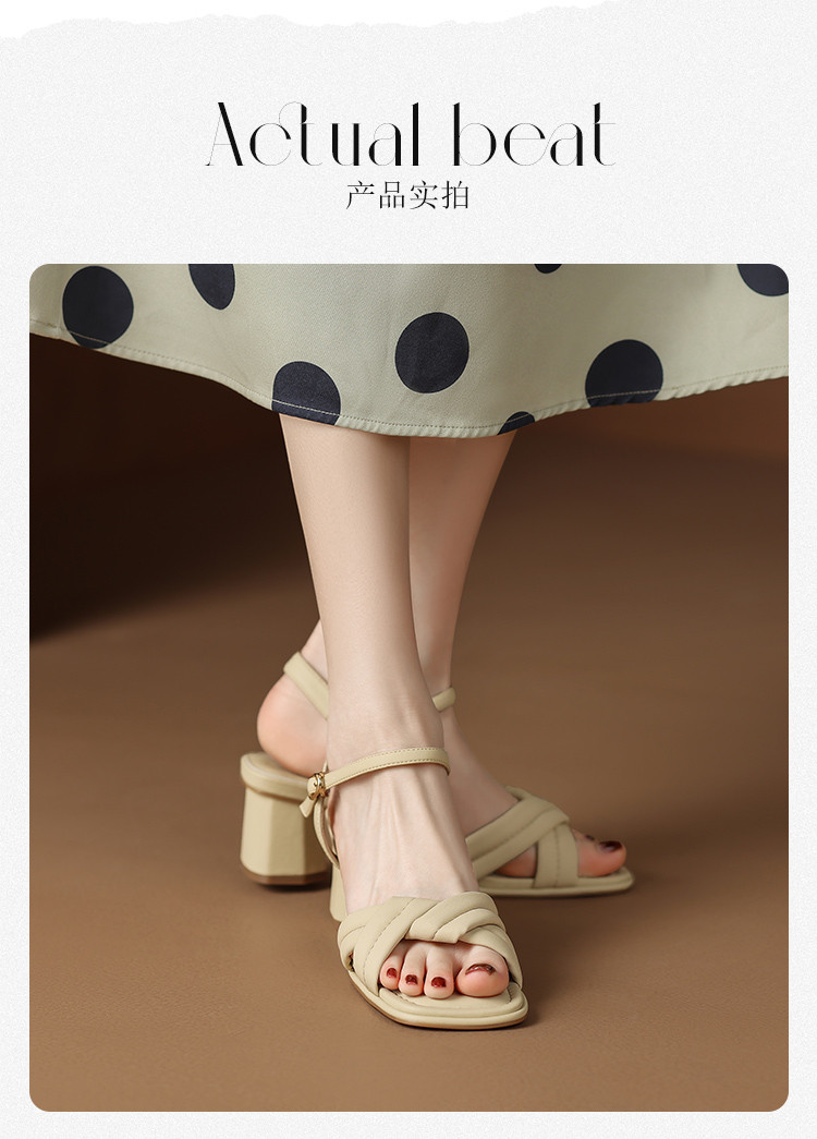 商品名称:【专柜同款】百搭粗跟凉鞋女后空凉鞋一字带凉鞋夏季女士凉鞋女鞋 571648