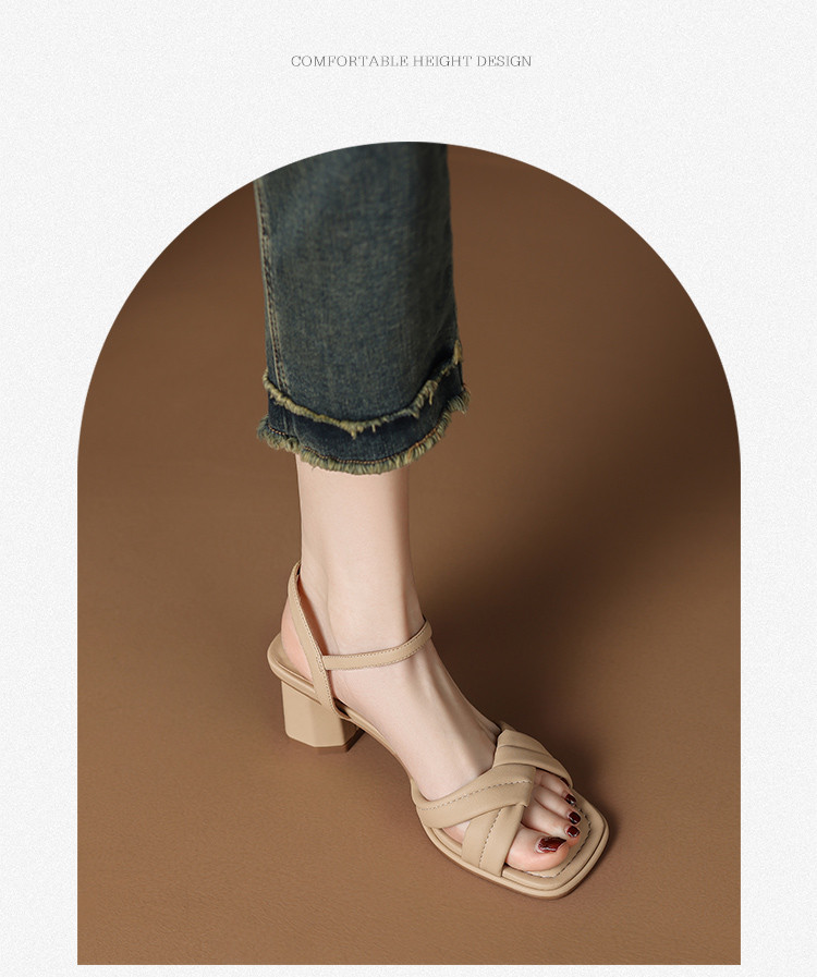 【专柜同款】百搭粗跟凉鞋女后空凉鞋一字带凉鞋夏季女士凉鞋女鞋 571648