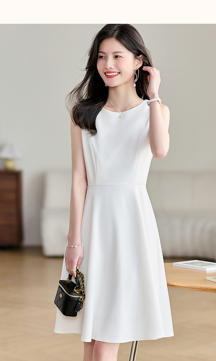【都市白月光】夏优雅千金风圆领无袖背心裙舒适藏肉中长连衣裙女 301761