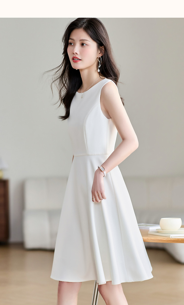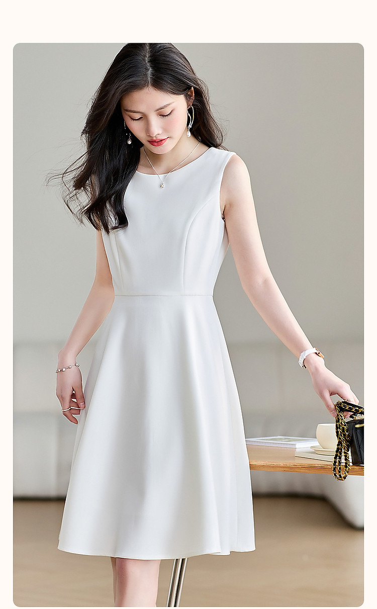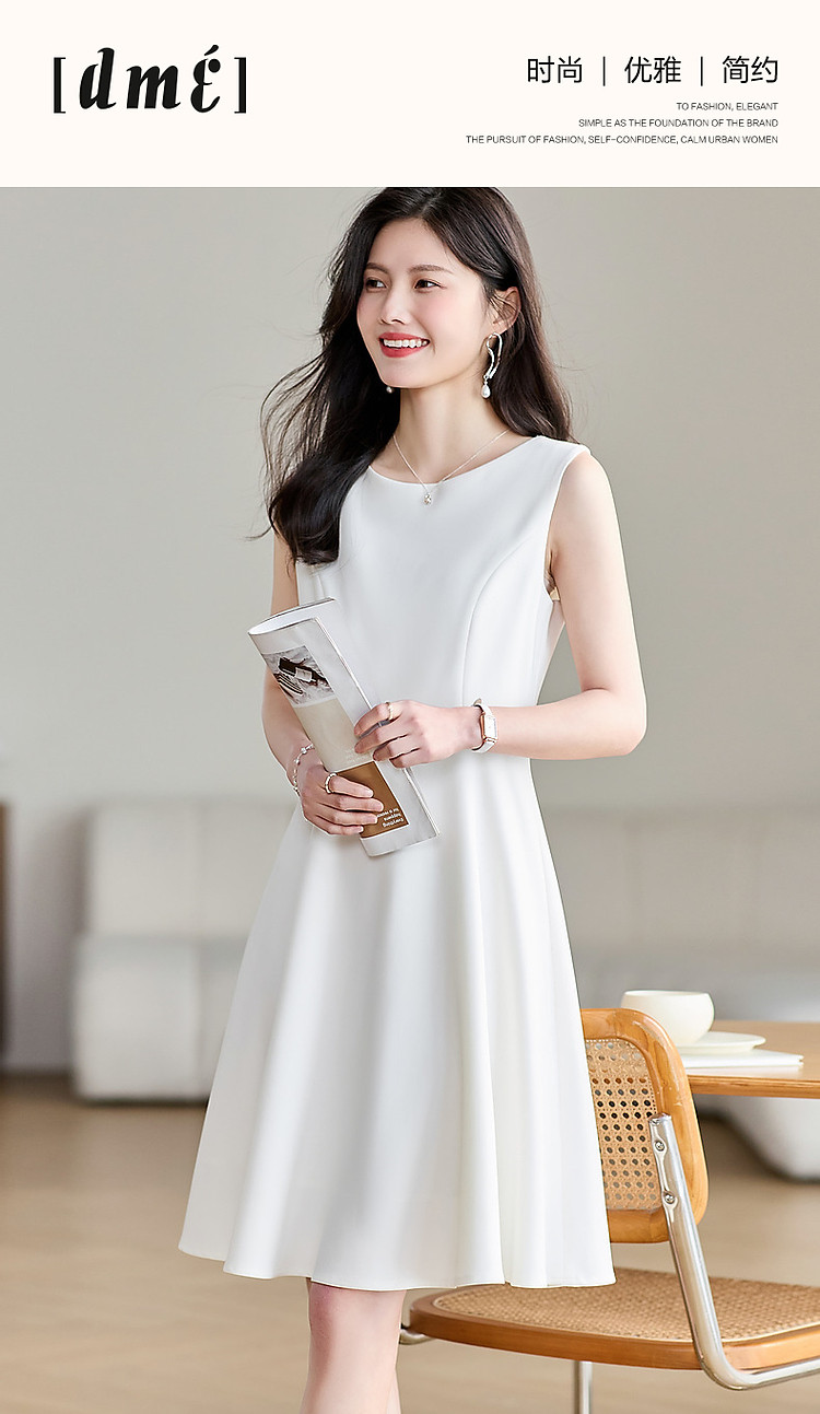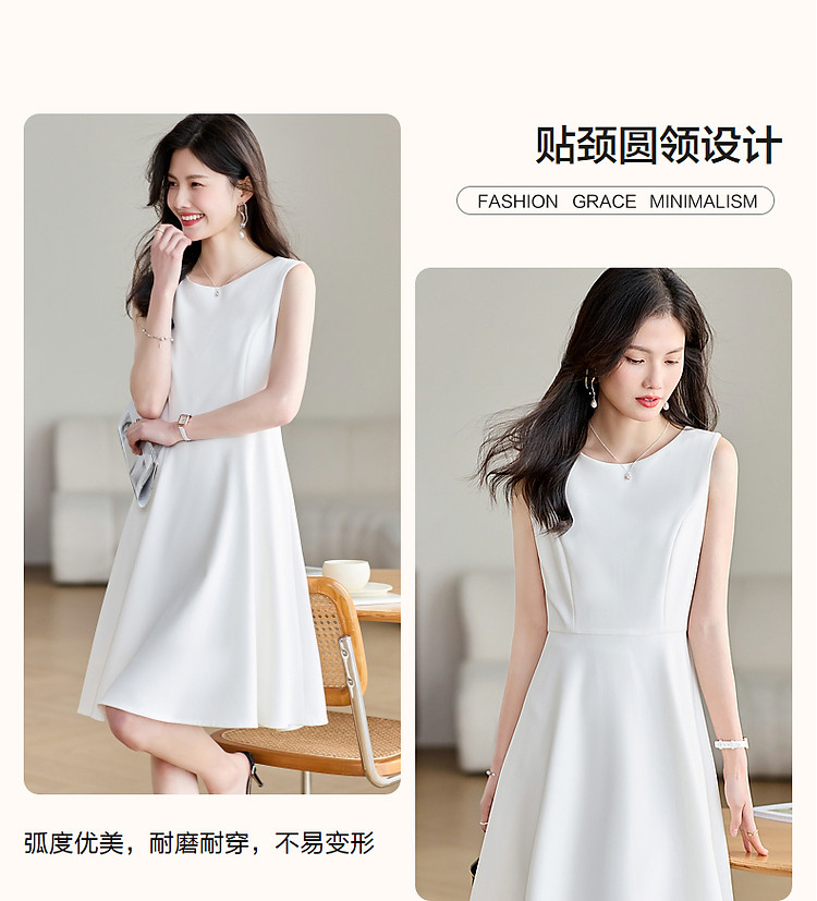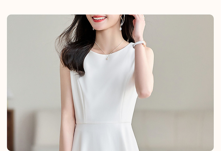 商品名称:【都市白月光】夏优雅千金风圆领无袖背心裙舒适藏肉中长连衣裙女 301761