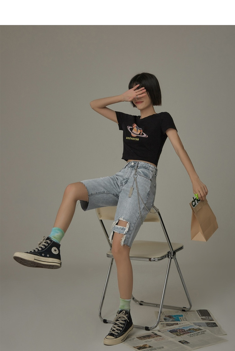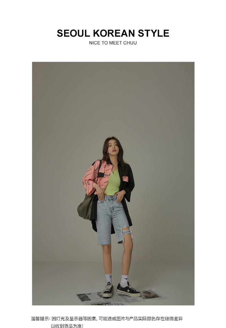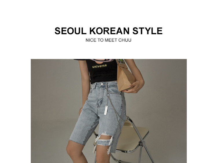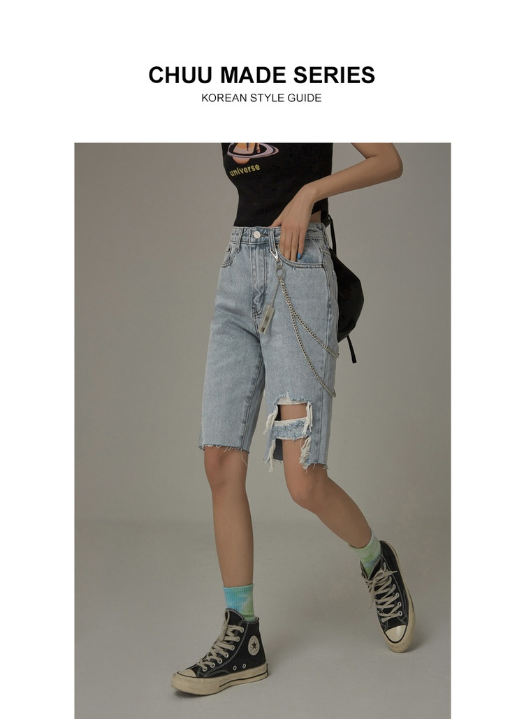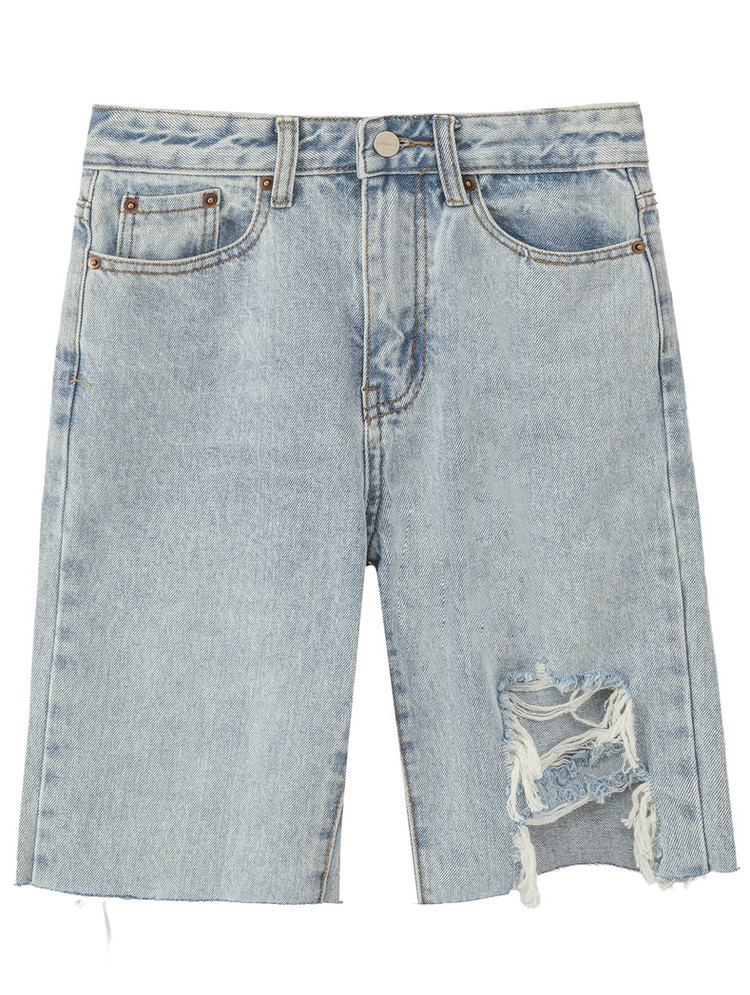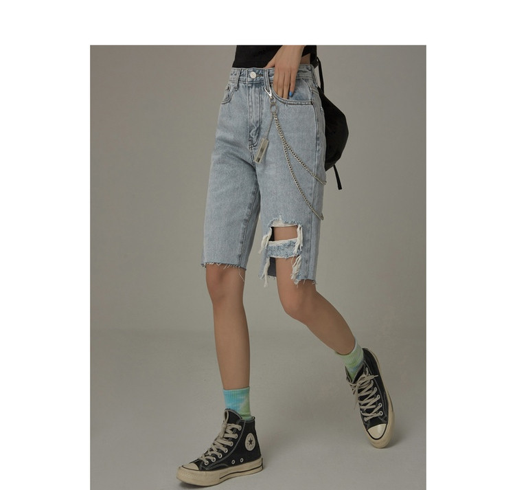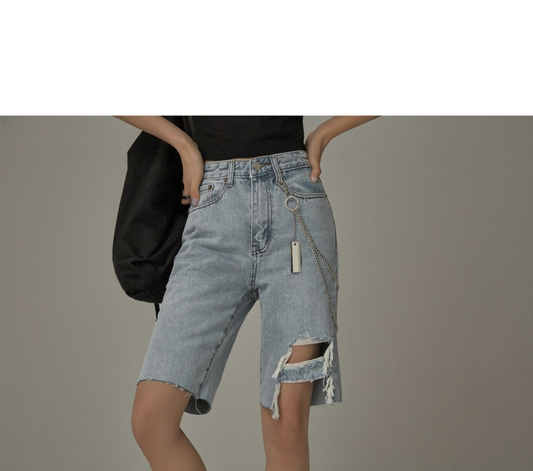 商品名称:复古做旧磨边破洞牛仔裤女春夏韩版潮流气质五分短裤 530835