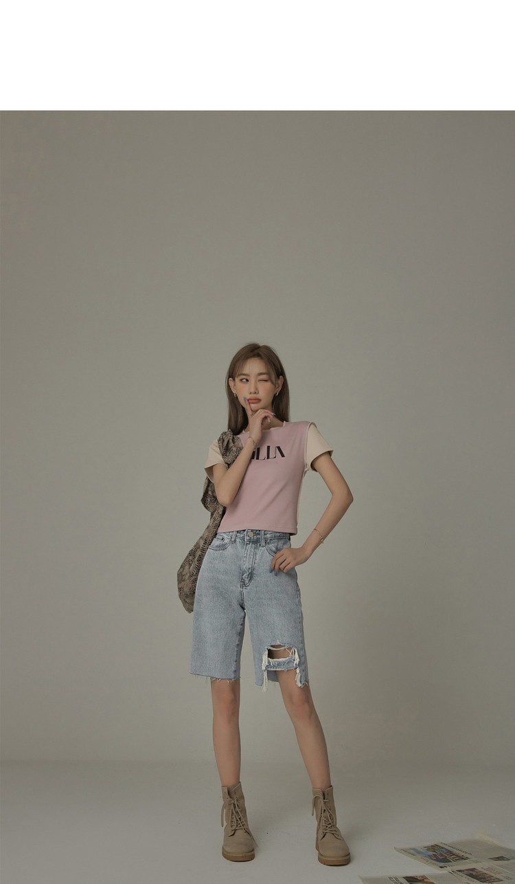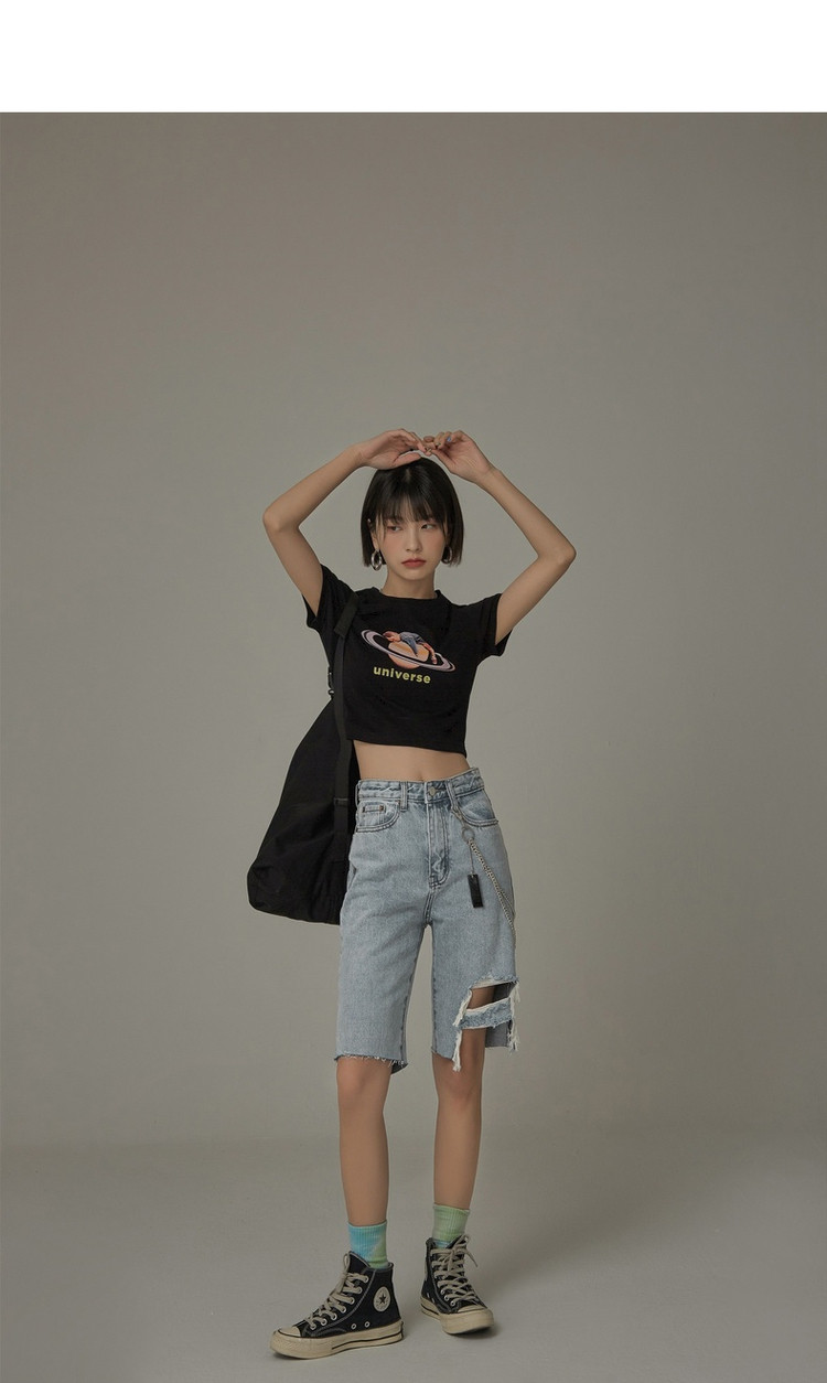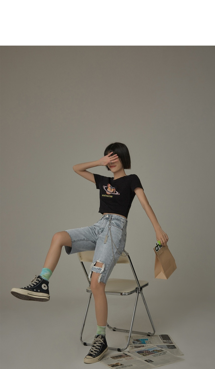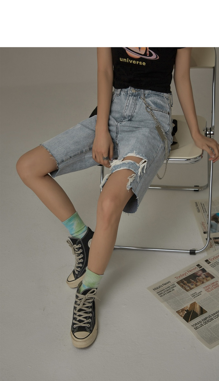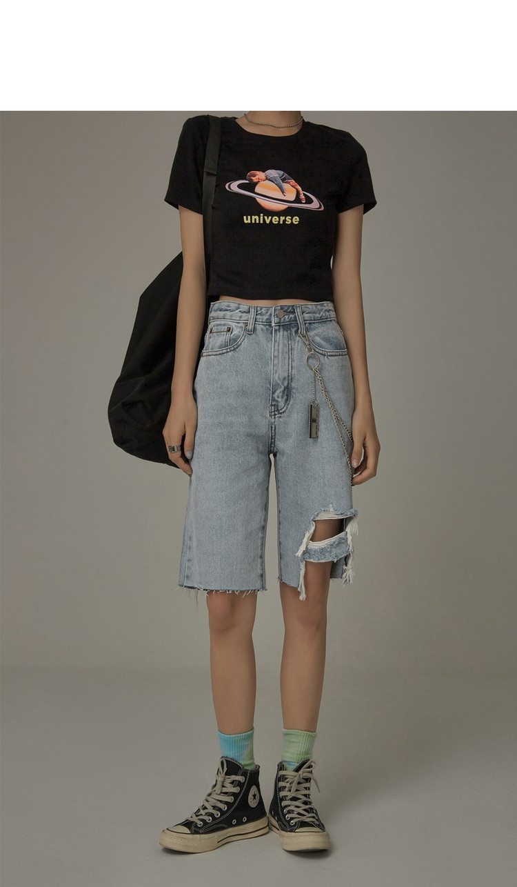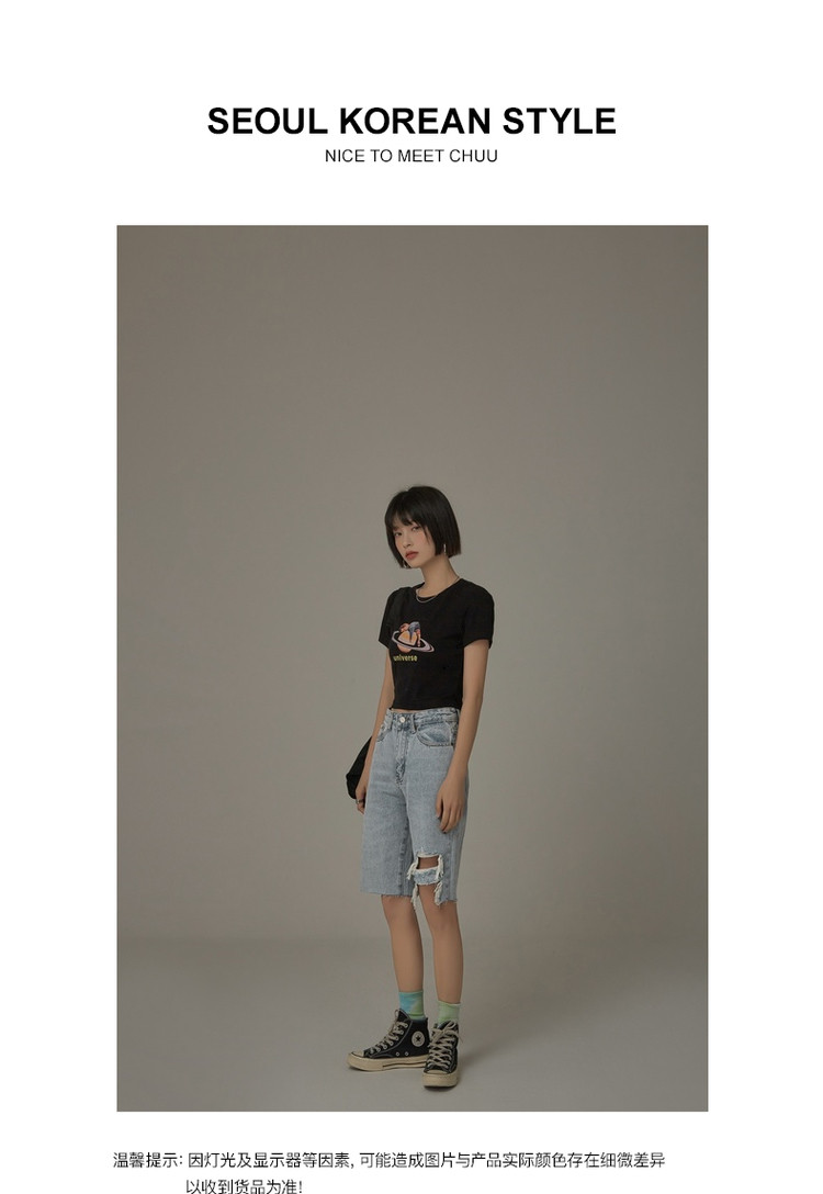 商品名称:复古做旧磨边破洞牛仔裤女春夏韩版潮流气质五分短裤 530835