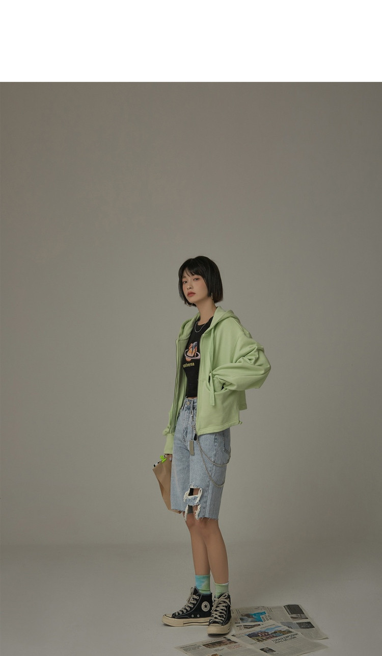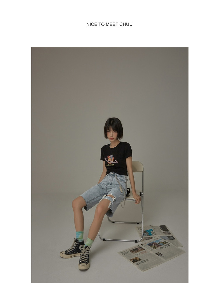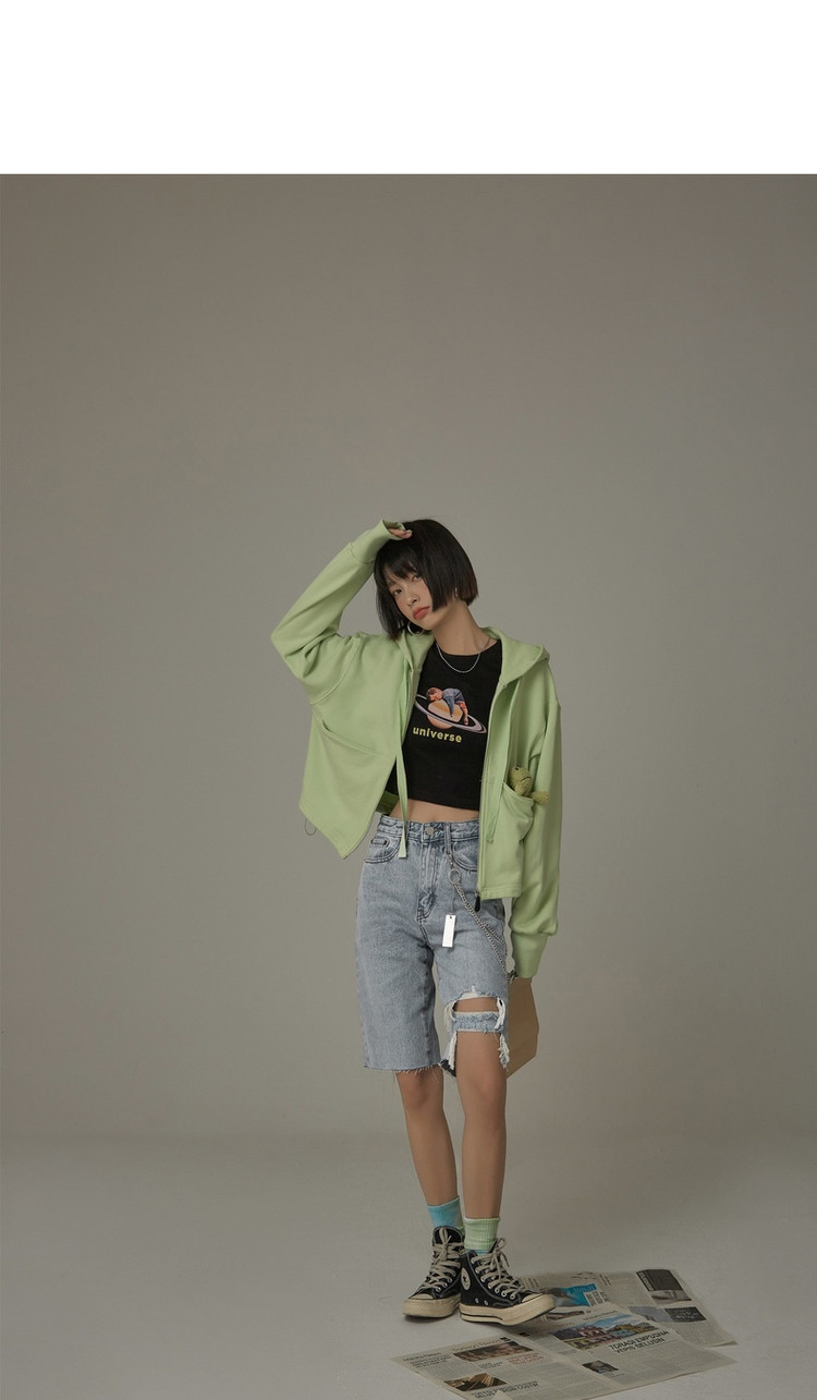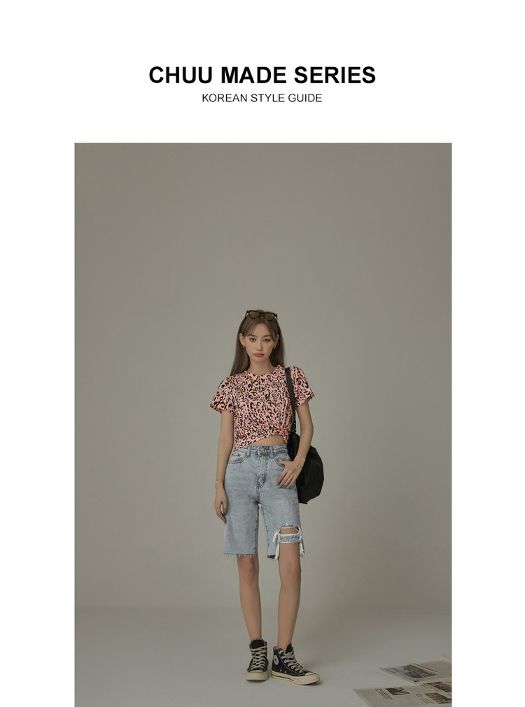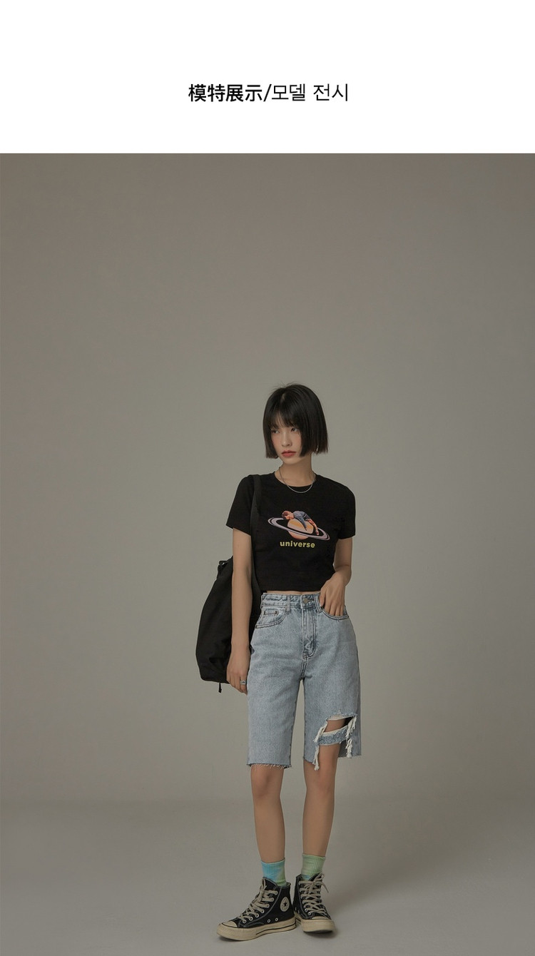 商品名称:复古做旧磨边破洞牛仔裤女春夏韩版潮流气质五分短裤 530835