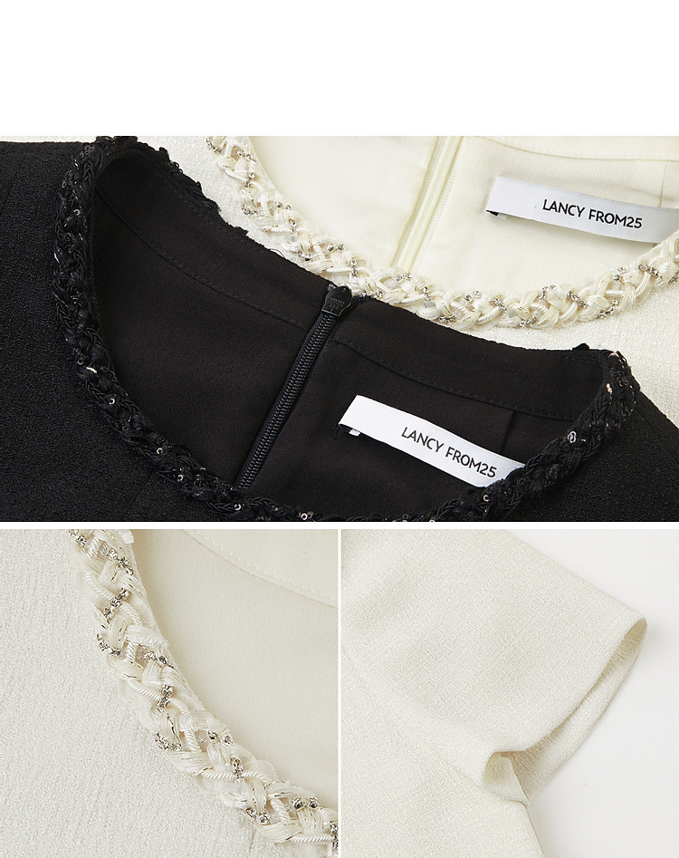 商品名称:法式复古高级感小香风气质裙子夏收腰显瘦短袖连衣裙 394329
