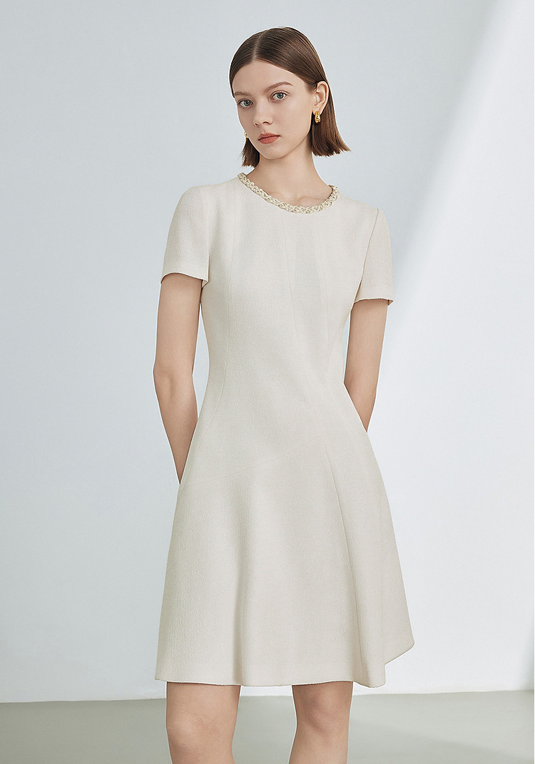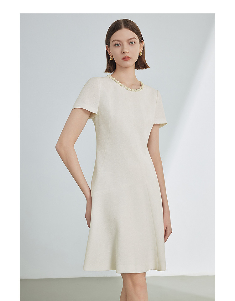 法式复古高级感小香风气质裙子夏收腰显瘦短袖连衣裙 394329