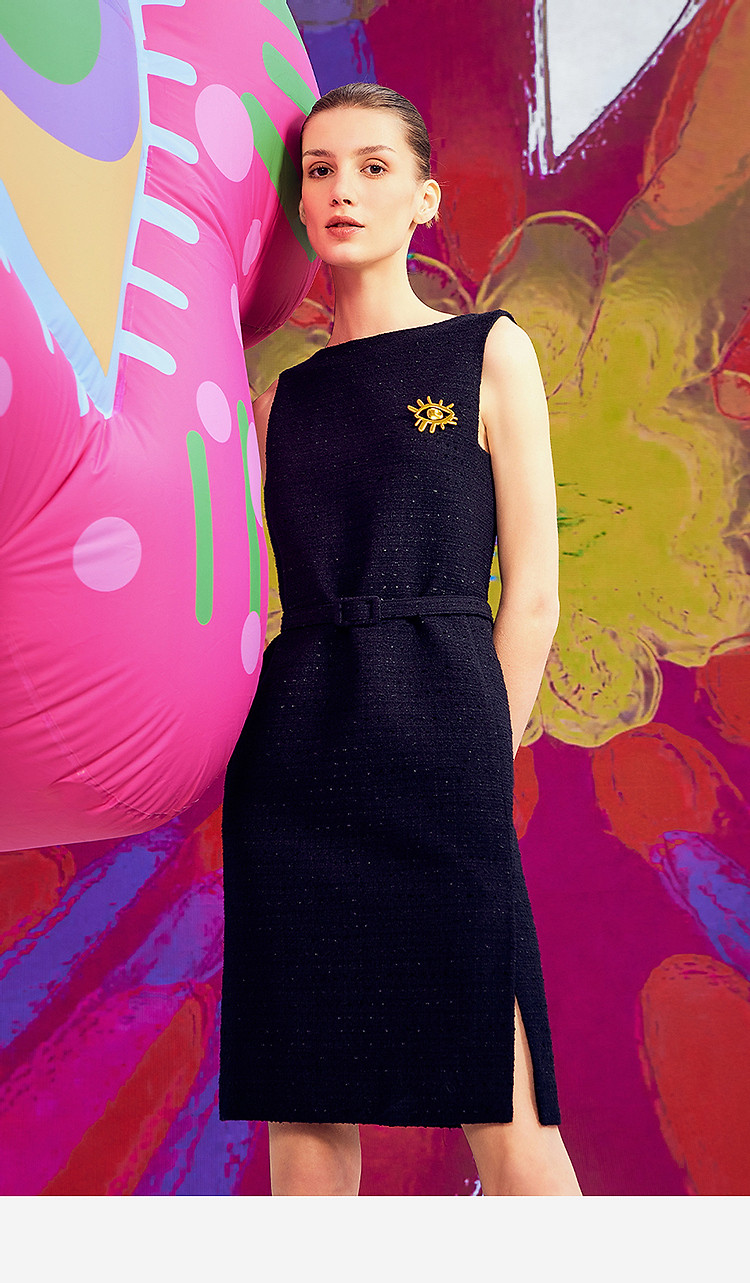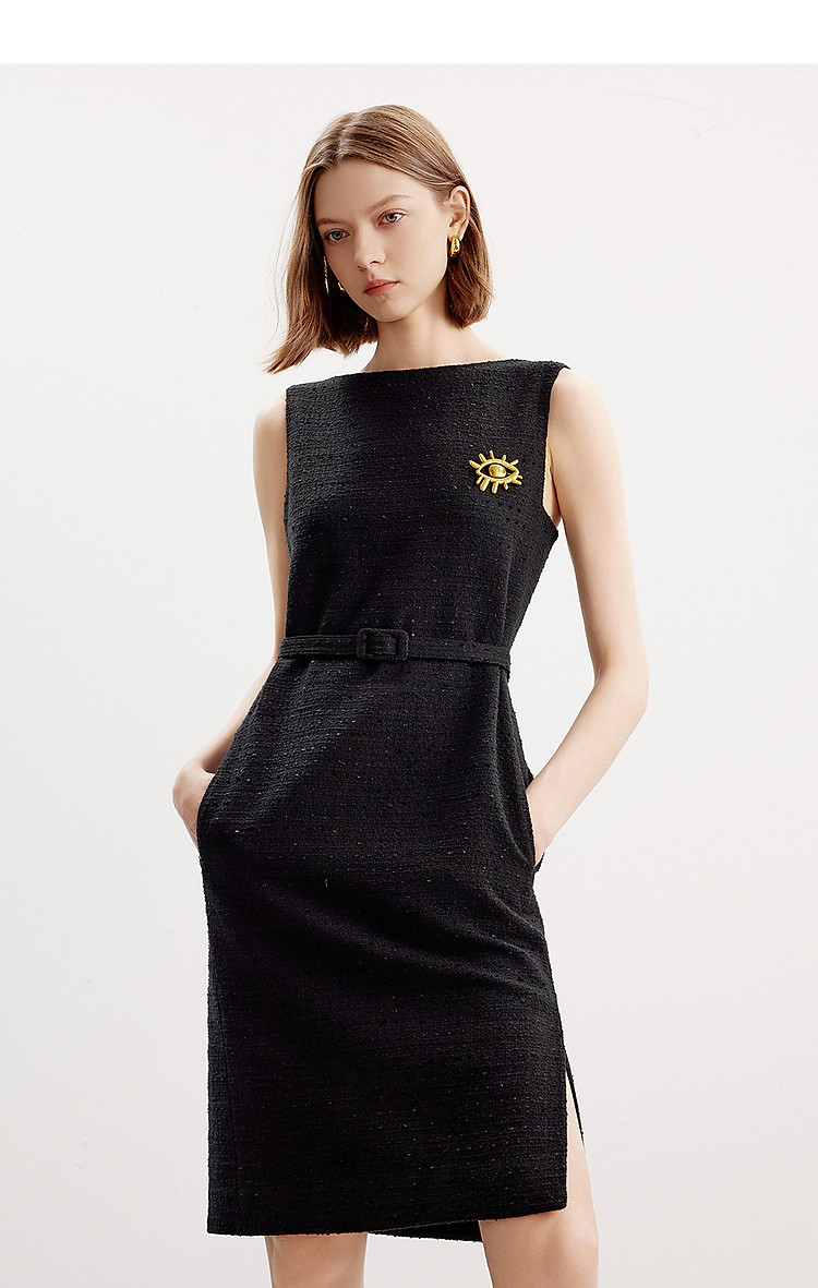 商品名称:【宋三土联名】法式气质无袖小香风一字领连衣裙夏款 681753