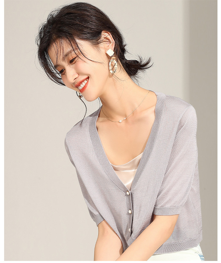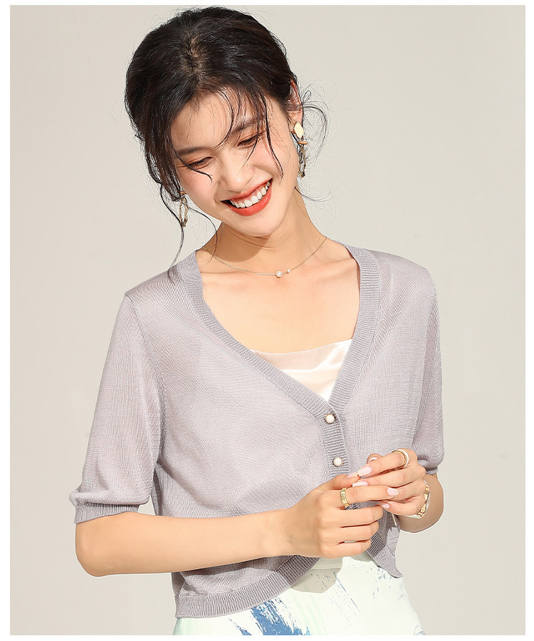 商品名称:【含桑蚕丝含莱赛尔】夏季外套女薄款披肩外搭镂空空调衫外套女夏 229855