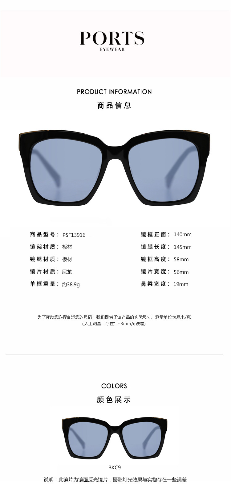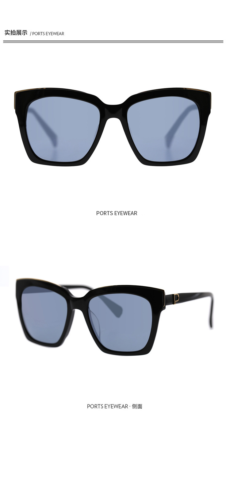 商品名称:PORTS休闲女款板材金属边复古方框女士太阳镜PSF13916 673546