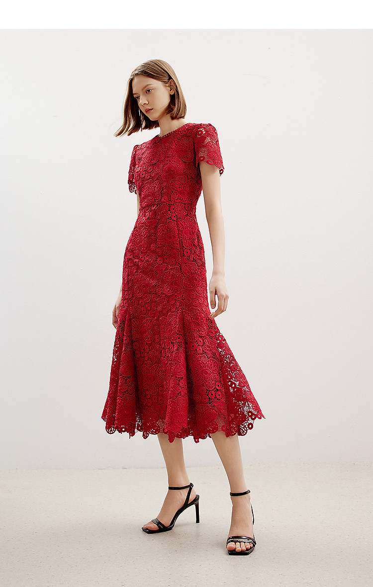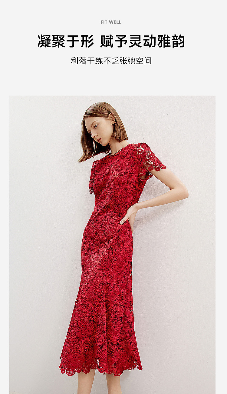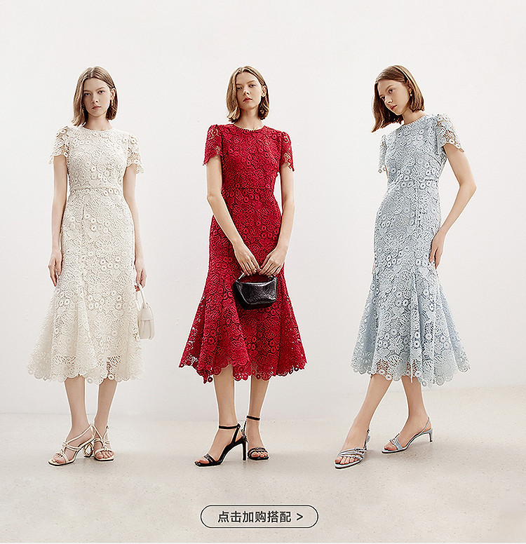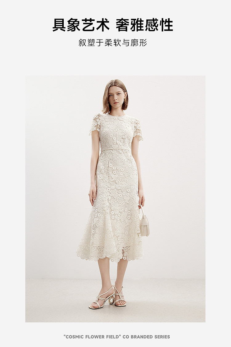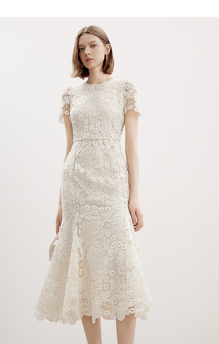 商品名称:【宋三土联名】法式蕾丝气质包臀鱼尾裙夏款短袖连衣裙女 309785