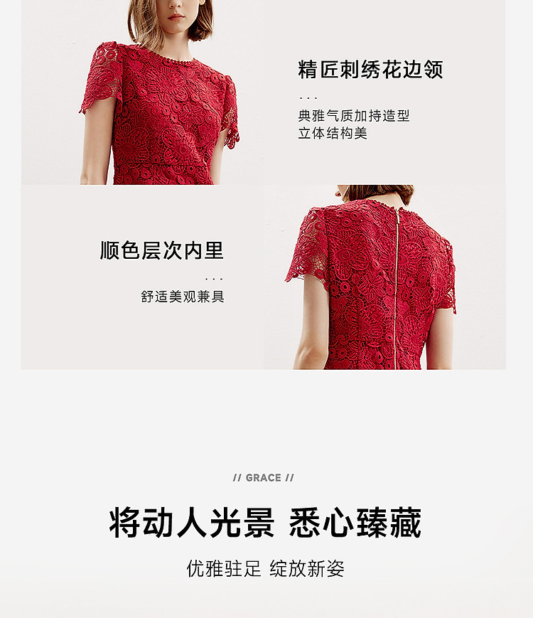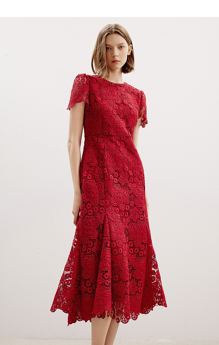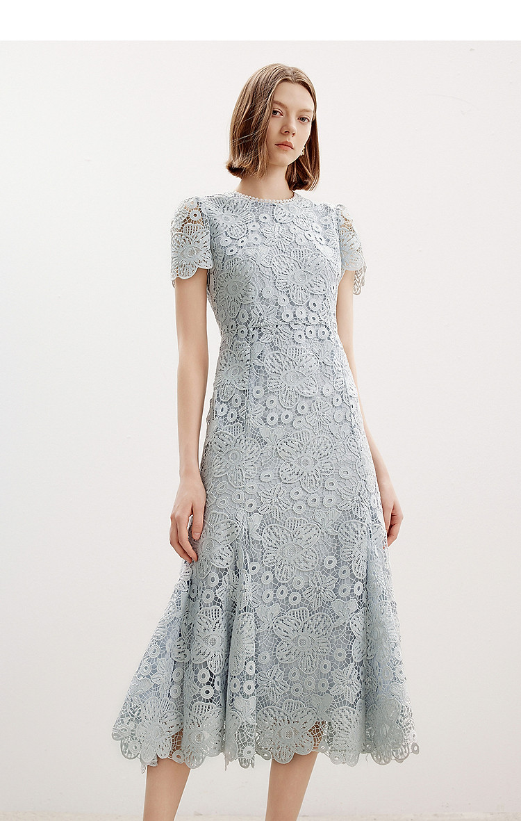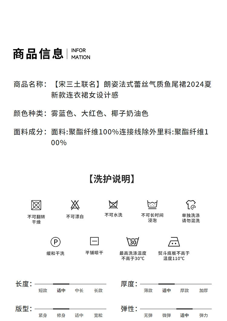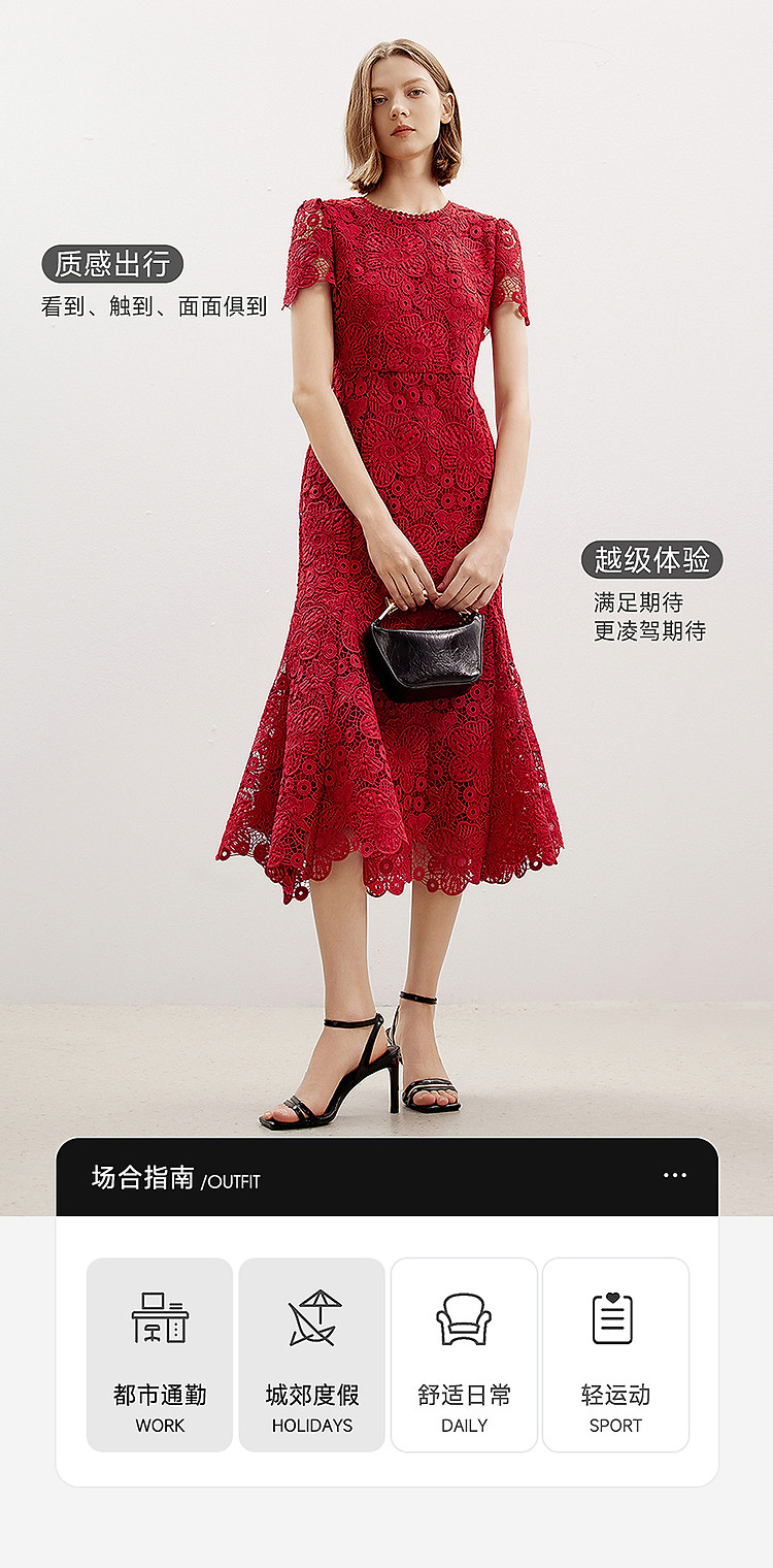 商品名称:【宋三土联名】法式蕾丝气质包臀鱼尾裙夏款短袖连衣裙女 309785