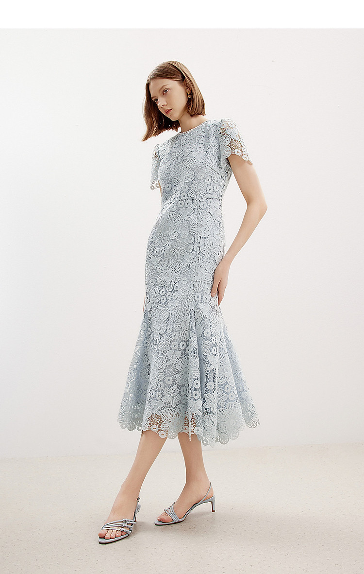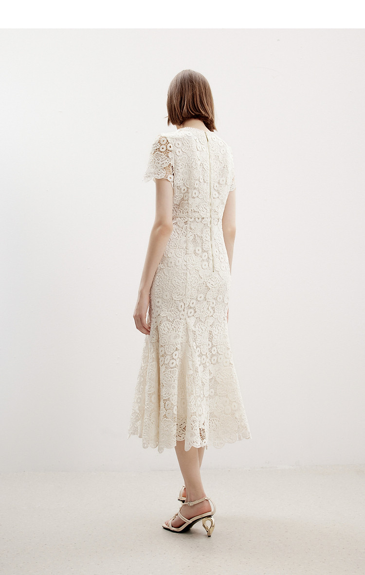 【宋三土联名】法式蕾丝气质包臀鱼尾裙夏款短袖连衣裙女 309785