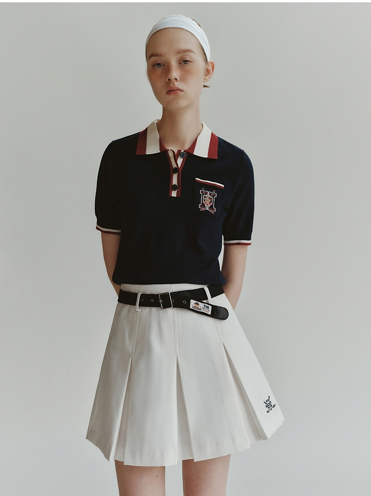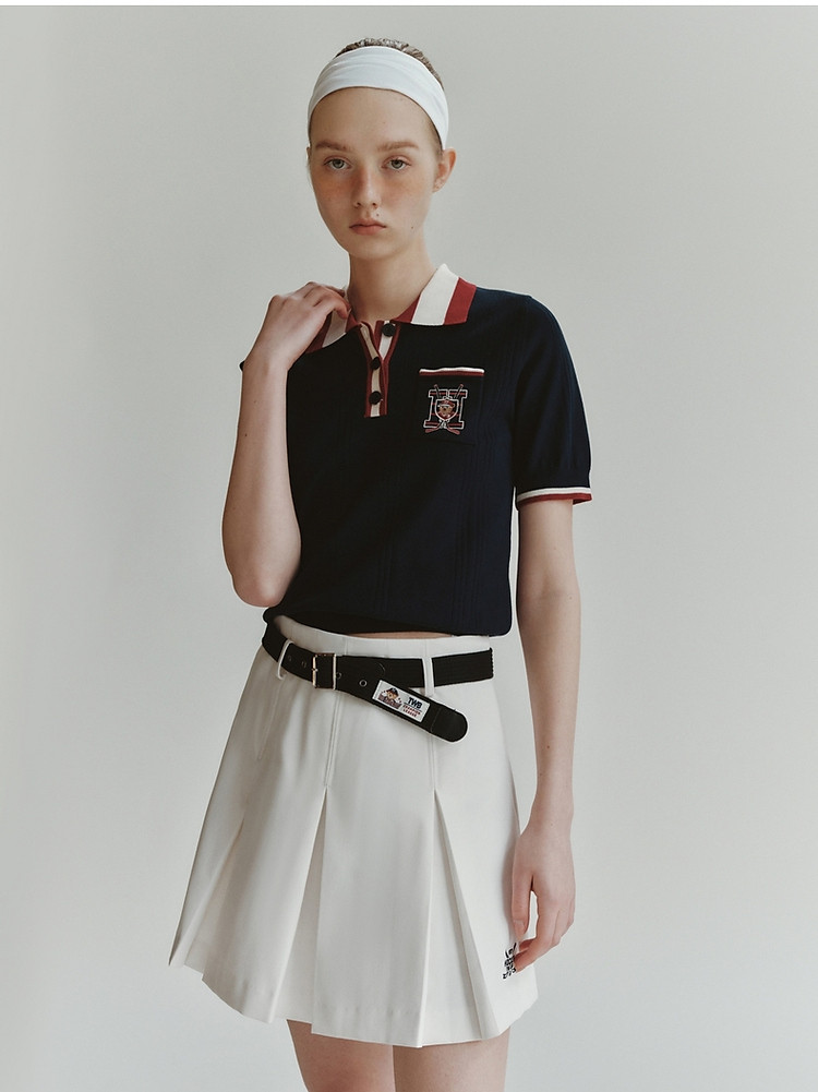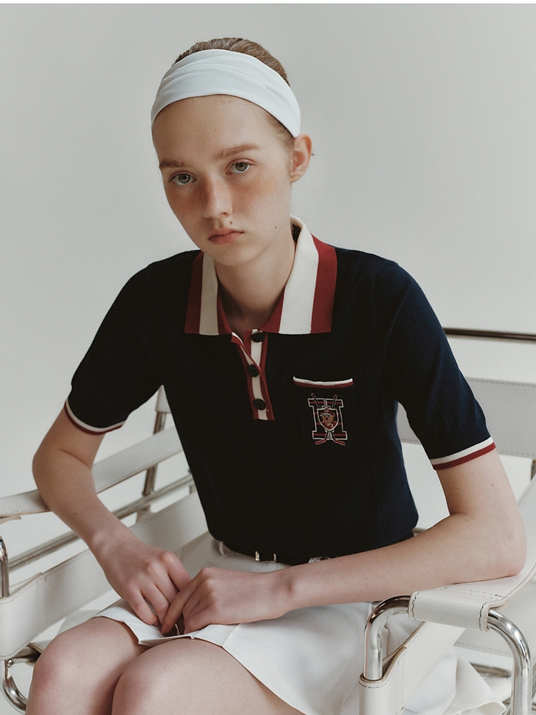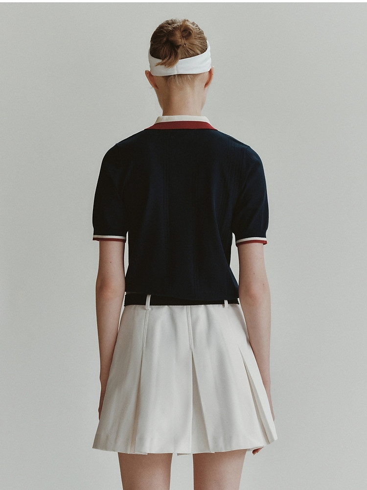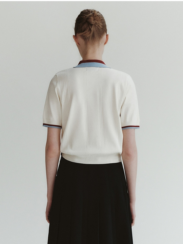 商品名称:小熊气质学院风撞色Polo领短袖针织衫包芯纱毛衣 324225