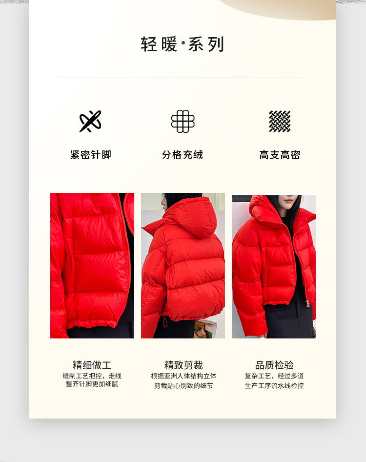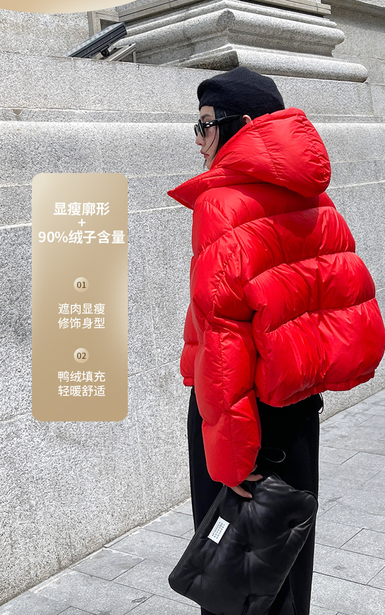 商品名称:【美拉德穿搭】加厚90绒肯豆风面包服女式宽松连帽短款羽绒服 628831
