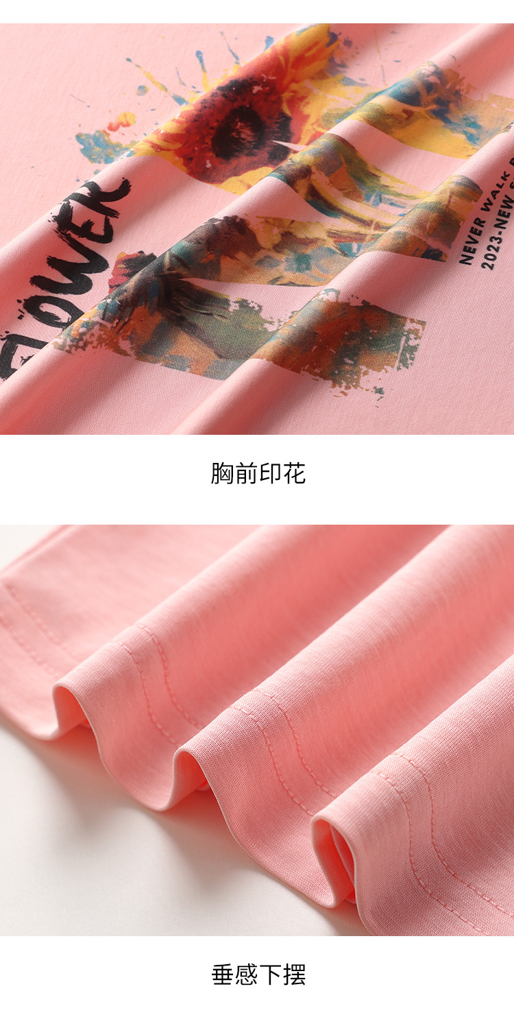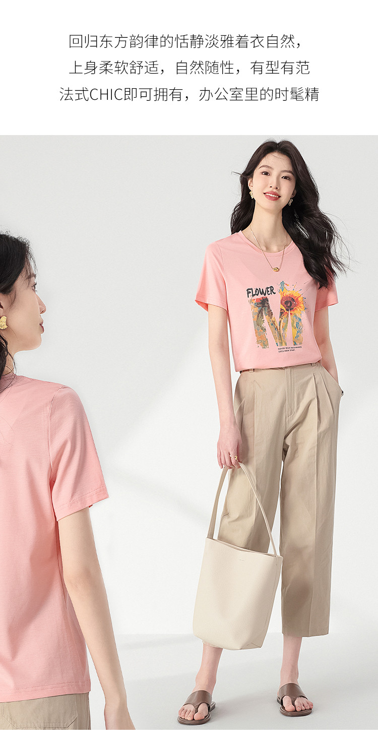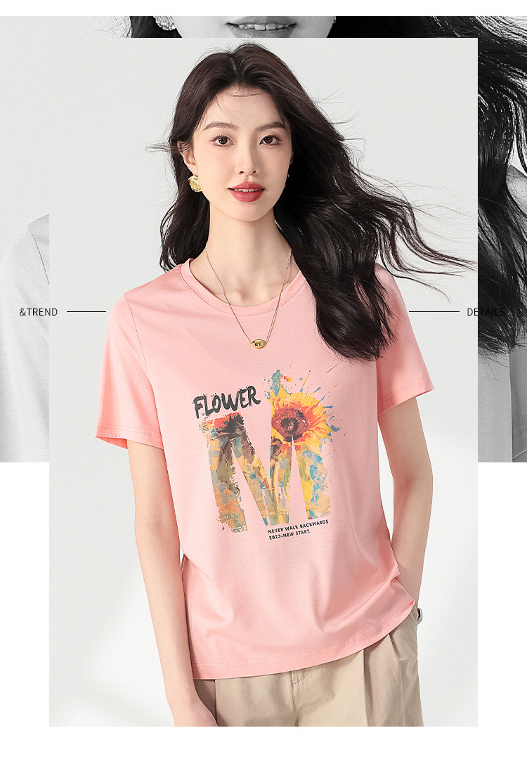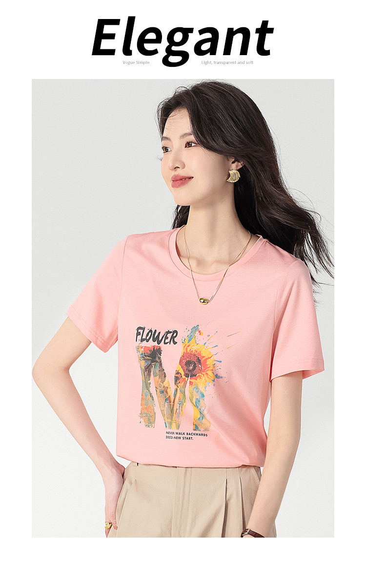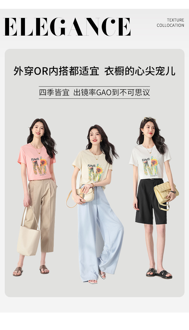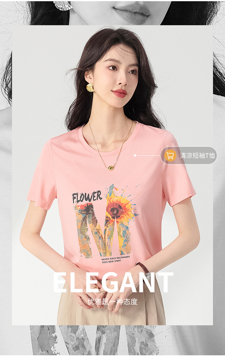 【含桑蚕丝】轻薄透气趣味印花圆领短袖T恤打底衫上衣 061203